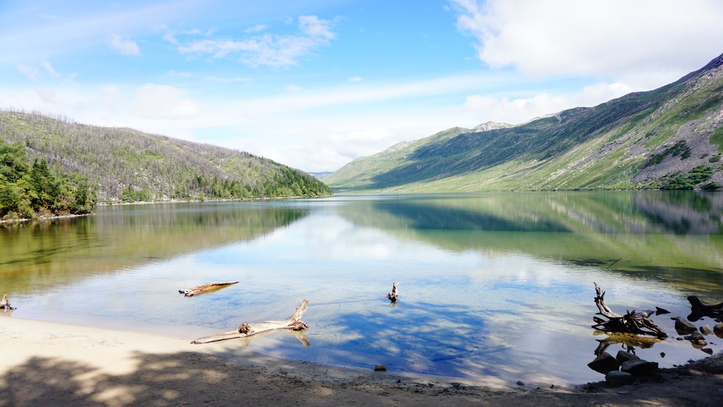 沿着杜鹃峡栈桥下山,一路激流飞瀑沁人心脾。虽近盛夏,在幽深的峡谷里还有高山杜鹃绽放。来到七色海,这是冷泉与温泉的共生湖,湖水清澈见底,却又有串串气泡冒出,氤氲出一片片云雾,沿岸古木参天,草甸环绕。据说当清晨湖水倒映着蓝天白云时候,如果运气足够好还能一睹莲花雪山在湖中的倒影。