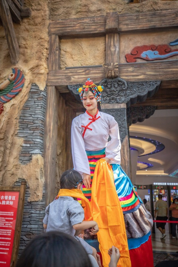 继续逛着,又在马帮广场遇到古今人物快闪穿越、藏羌歌舞、藏族戏、民间绝技等演出,层出不穷、应接不暇。
