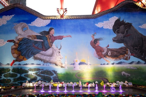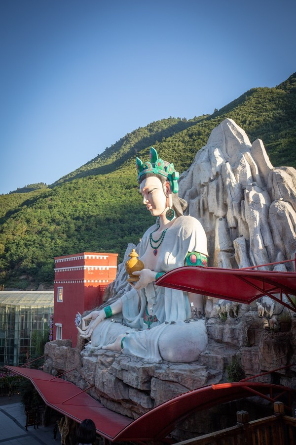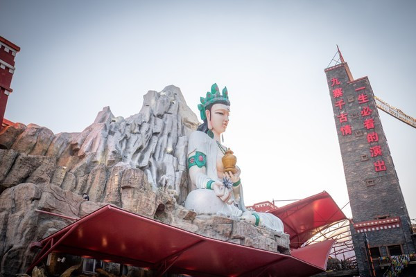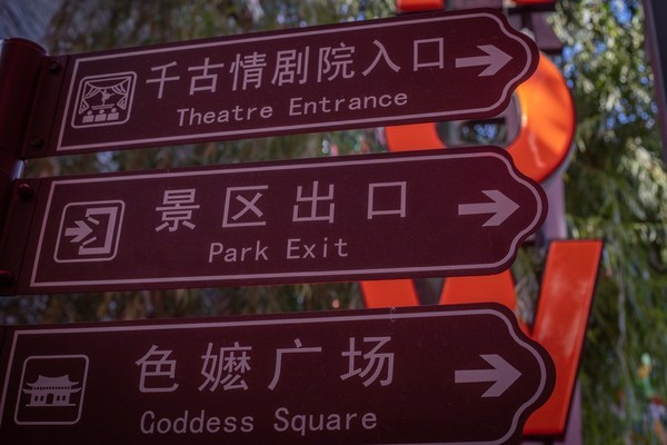 总结一下园区内的景点分布有:色嬷女神造像、转经筒、唐卡谷、茶马驿站、马帮广场、酒吧街、圣水街、千佛洞、吐蕃集市以及藏族碉楼等,到处都是原汁原味的藏羌风情,因此这里的宋城同杭州的宋城相比,多了一份异域情调。