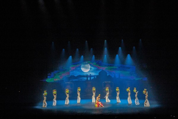 第三场 汉藏和亲,文成公主和松赞干布联姻的千古佳话再一次被搬上了舞台。公元641年,文成公主受父皇唐太宗之命,远赴西藏和亲。随同文成公主入藏的队伍,多达数百人,其中包括唐朝的建筑、医药、农耕、纺织等专家及学者。文成公主把汉民族的文化传播到吐蕃,促进了当地经济和社会的发展,铸就了唐朝和吐蕃的和平与繁荣,书写了唐蕃历史上影响深远的一页。这应该说是中国历史上最具影响的一次和亲,因为它的重大意义,使得这一千古佳话,时至今日仍被广为传颂。