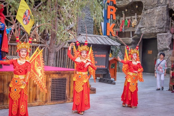 古色古香的街道上还有各种身着特色服饰的演员进行表演互动,更是给人一种真实的穿越感。