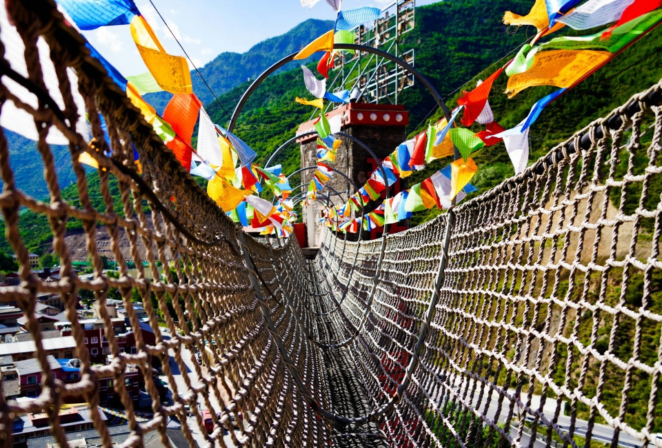 一座填补九寨沟娱乐生活的宝藏“乐园”九寨千古情景区,即是一座演艺王国,也是一座冒险乐园。不论白昼与黑夜,来到园区都可以沉浸于欢乐的海洋之中。挑战横跨两座藏碉之间的经幡索桥,到唐卡广场的幸福呐喊释放压力,看泉水喷涌......与熊猫超人合影,参观千佛洞奇观,穿越时空之门,一览藏寨奇风异俗。