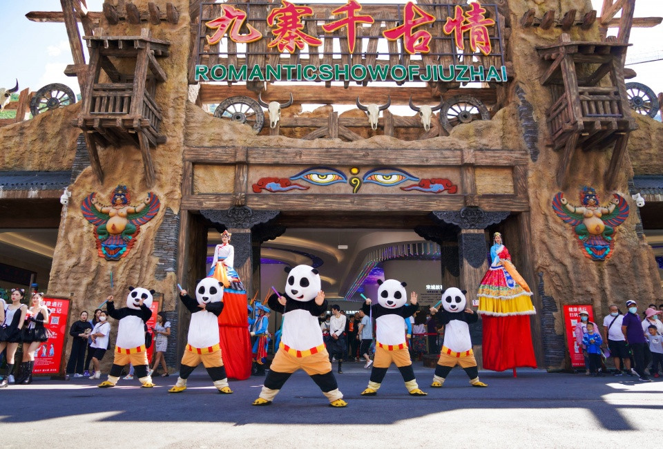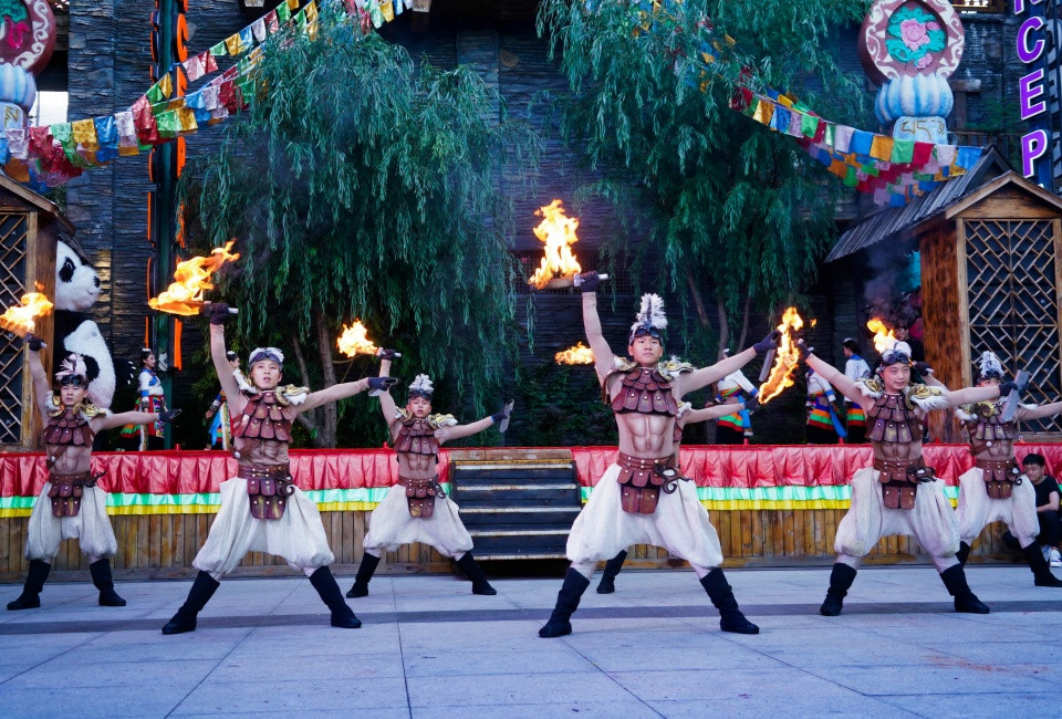 “宋城千古情”有着世界三大名秀的美名,如今在国内11座城市都有千古情演艺。每座城市的千古情景区,都涵盖了极为丰富的户外演出。在九寨千古情园区,有着独具川风蜀韵的《川剧白秀》、《功夫熊猫》,再现了川剧变脸、喷火的精彩场景,以及展现了国宝大熊猫灵动的一面。