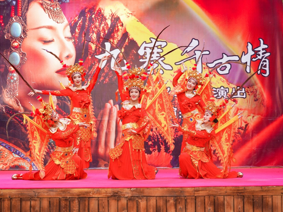 一座活着的藏羌古城:《九寨千古情》九寨千古情景区,地处山水交融的九寨风情街区,是一处体验沉浸式互动演艺的乐园。一台仅1小时时长的《九寨千古情》,由300位演员、上万套机械设备,以及运用声光电气等高科技手段,以360度全景演出的形式展现九寨沟藏羌族同胞的民俗文化。毫不夸张地说,九寨千古情就是一座活着的藏羌古城。