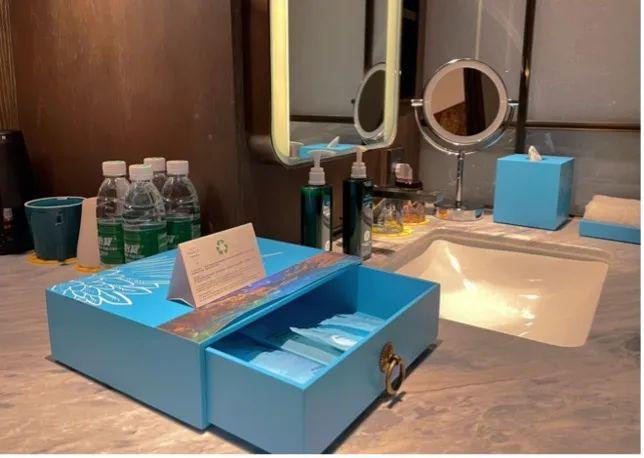 这次去九寨沟旅游前听了朋友的推荐,定了这家洲际集团旗下的英迪格酒店。本来只是当做住宿之地,没想到这酒店自己就是“景点”,简直太惊喜了。九寨英迪格酒店位于四川省阿坝藏族羌族自治州九寨沟县漳扎镇郎寨村中查沟,距离黄龙机场大概1.5个小时车程,酒店可以提供免费专车接机服务。作人员吹起召君迎接,为我们献上哈达,传统而隆重的迎客礼让我们和一同抵达的其他朋友都非常惊喜。酒店酣畅的藏羌人文体验顺利办理入住后,我迫不及待在酒店里逛了一圈。酒店的装潢充满藏羌文化元素,无论是木质的吊顶还是色彩斑斓的地毯,都透露着别具匠心的设计感,让人沉浸于当地的文化氛围中。客房的设计以“藏·藏”为主题,羌族传统布艺刺绣及阿坝藏族独有的唐卡绘画点缀其中,连做欢迎茶点的盒子都颇具藏式文化元素,可谓是非常用心。