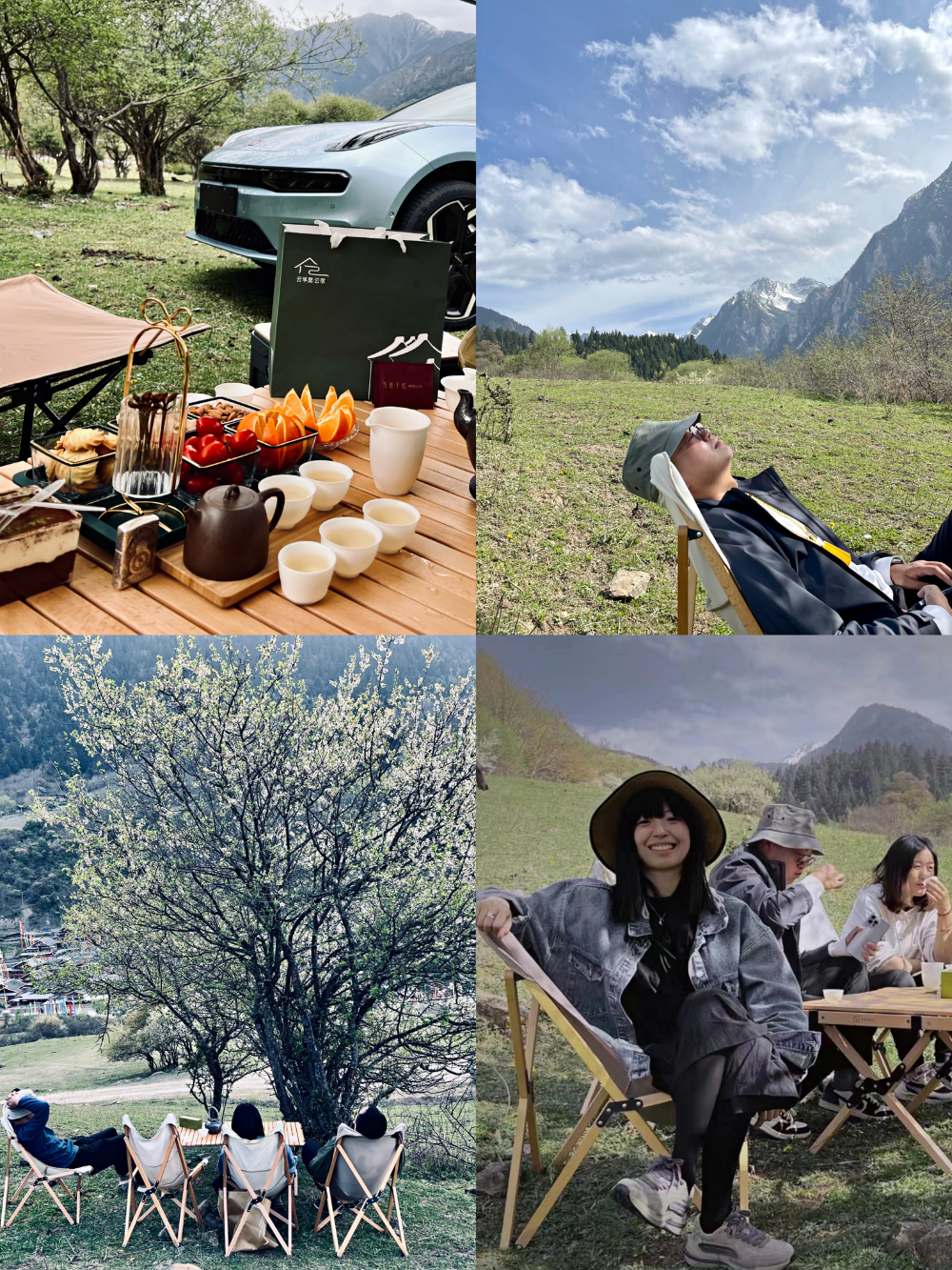 我们经常带着茶具和好心情,随处找一颗树下,望着雪山发呆,泡壶茶晒太阳。