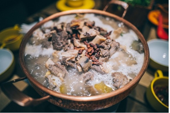 象征着丰收的游·藏邻里餐厅,里面金黄的色彩,将传统的安多礼仪和浪漫的英国庄园相融合,赋予了宾客多元的用餐体验。不得不提的就是酒店的餐饮特色——藏式汤锅宴,可以说每一口都是在犒劳我们的味蕾,真正满足了我们对藏式美食的期待。让我印象深刻的就是那口天然的牦牛尾骨慢炖的骨汤,用餐之时再来添上一碗当地特制牦牛酸奶,现在想起来都让人充满回味。