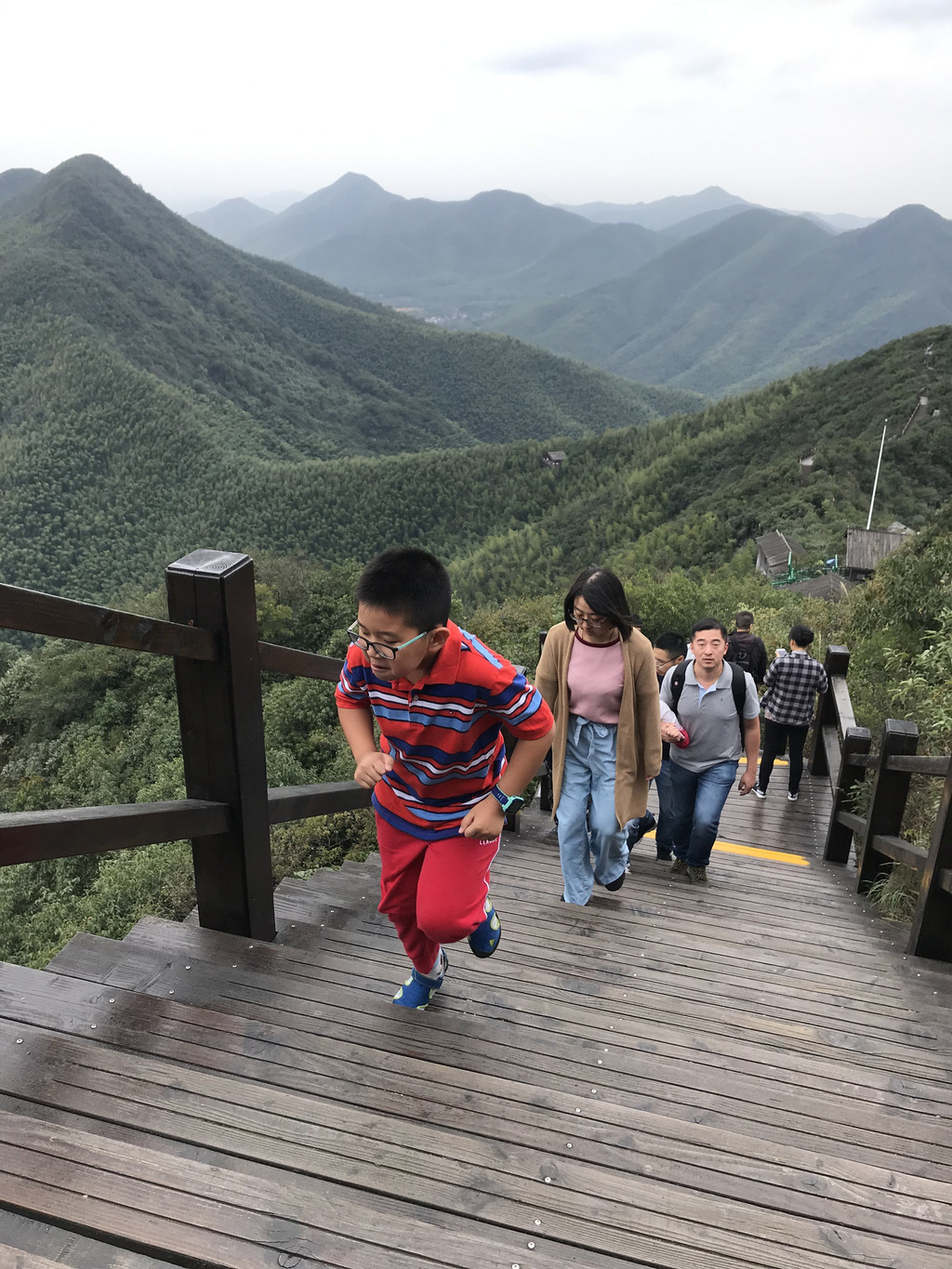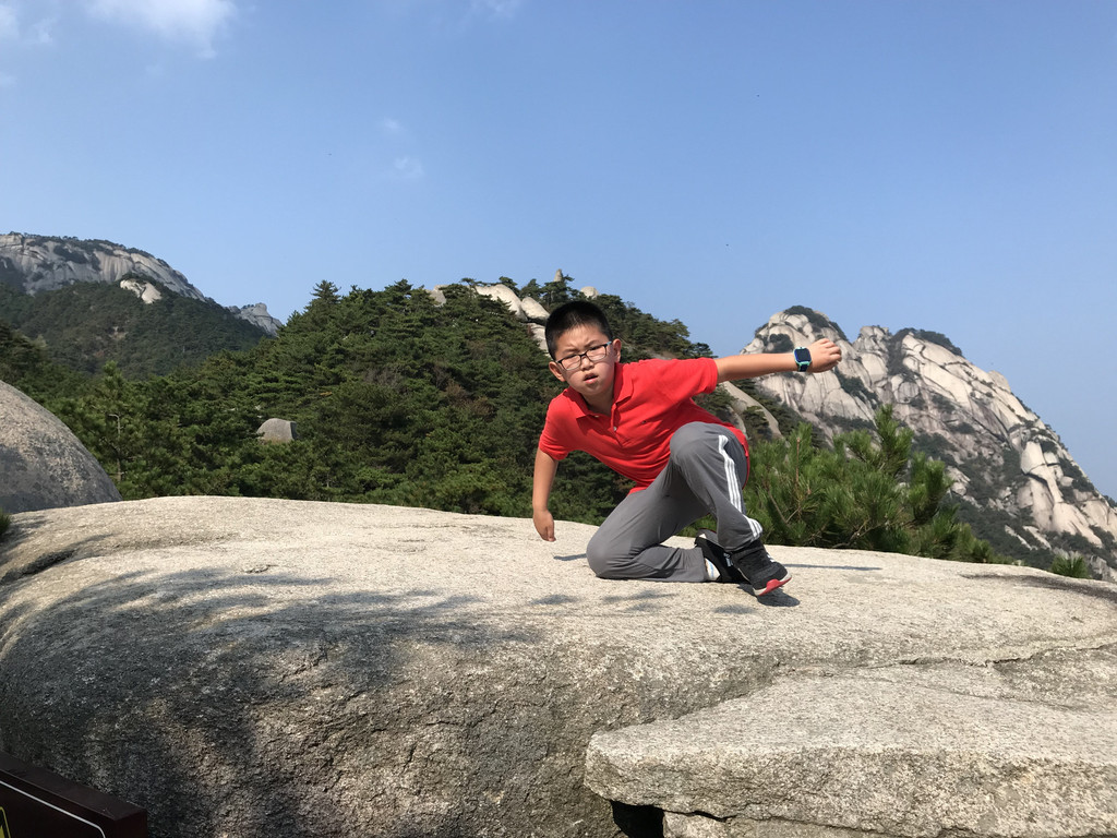 天柱山,酷似华山的花岗岩结构,洁白高贵,壮美雄奇。整座大山,就是一座巨大的花岗岩山体,巍峨中见识奇绝,壮阔中感受秀美,古老中绽放新生,险峻中探寻安怡。龙太子全程自己攀上爬下,展露出那份与山俱在的顽强与坚持。这是这些年陪孩子爬山经历中,我们亲眼所感受到的孩子在成长。