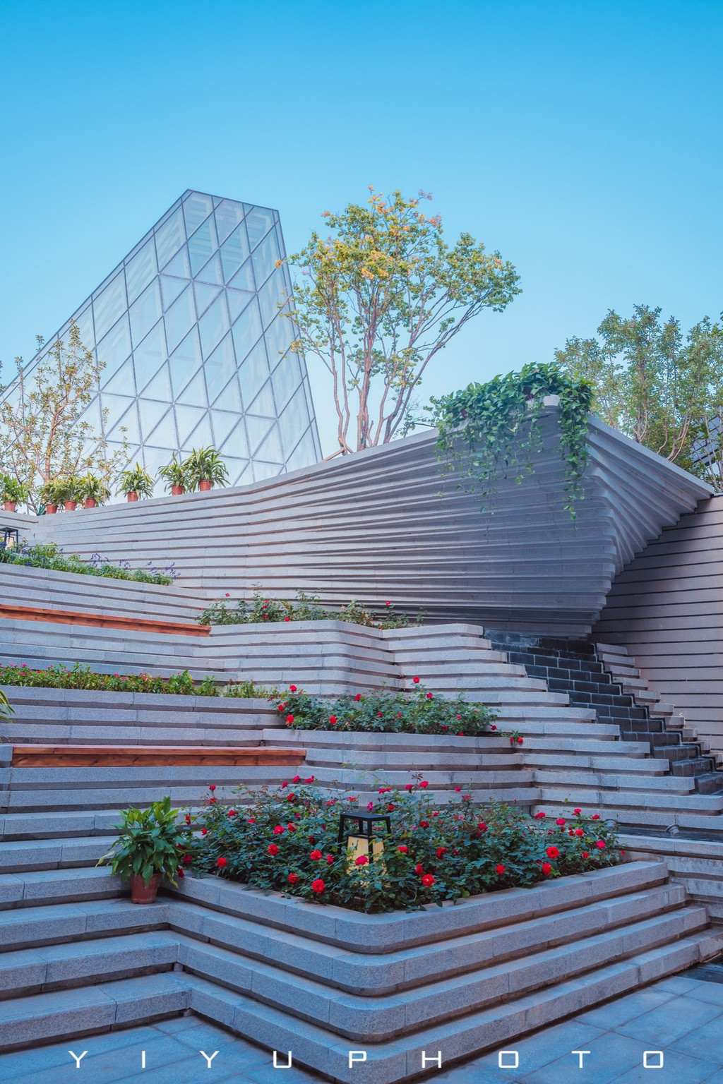 示范区内部景观也很精致,阳光露台,层叠设计感楼梯,还有镜面水池,闲逛期间也感受到生活的美好,这里的餐厅有早餐、午餐和晚餐,可以零点,住在帐篷营地里可以到这边来用餐,步行十分钟左右,非常方便。