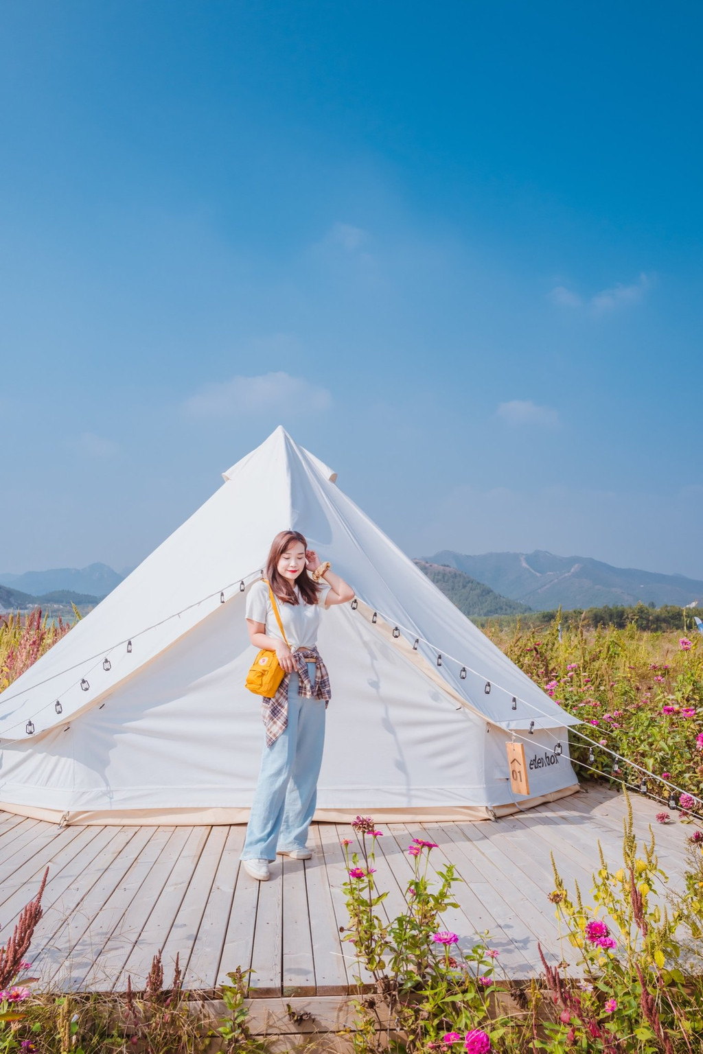 久居城市,连大人都有一个渴望放飞的心,像孩子一样亲近自然,在伊甸园生态国际教育生活示范区,最醒目的就是大片原野上一座座月白色的帐篷了,盛开的格桑花丛围绕其间,阳光下,此情此景忍不住让人欢呼,雀跃着奔到近前,瞬间放下所有被禁锢在城市中的约束感,放肆呼吸新鲜与自由,尽情享受这与大自然零距离的亲密接触。