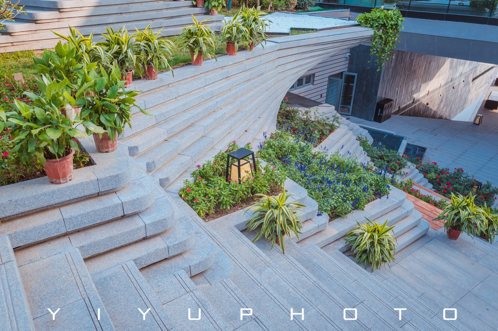 出了样板间,在屋顶花园远眺可以看到最具特色的建筑,这里就是光的殿堂——岩间美术馆。这里的地下一层是矿坑club ,是这里的精神地标。