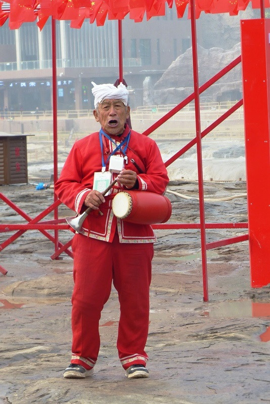 在奔腾的黄河壶口瀑布的助力下,高声吟诵李白的诗作《将进酒》: