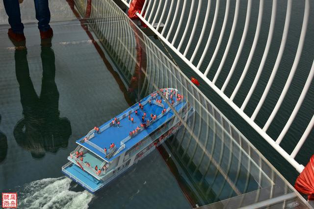 因为索道的运力所限,也因为游览线路的过于漫长,更因为溶洞的平淡无奇,个人认为去往凤凰山时,一般体力的游客,完全没有必要走索道——溶洞——玻璃桥的环形线路耗费时间和体力,只需乘坐索道登上对岸的观景台欣赏高峡出平湖的美景后,即可乘索道返回出发点,然后向下往返通过玻璃桥,体验惊险刺激的空中步道观赏游船桥下一晃而过的速度激情。