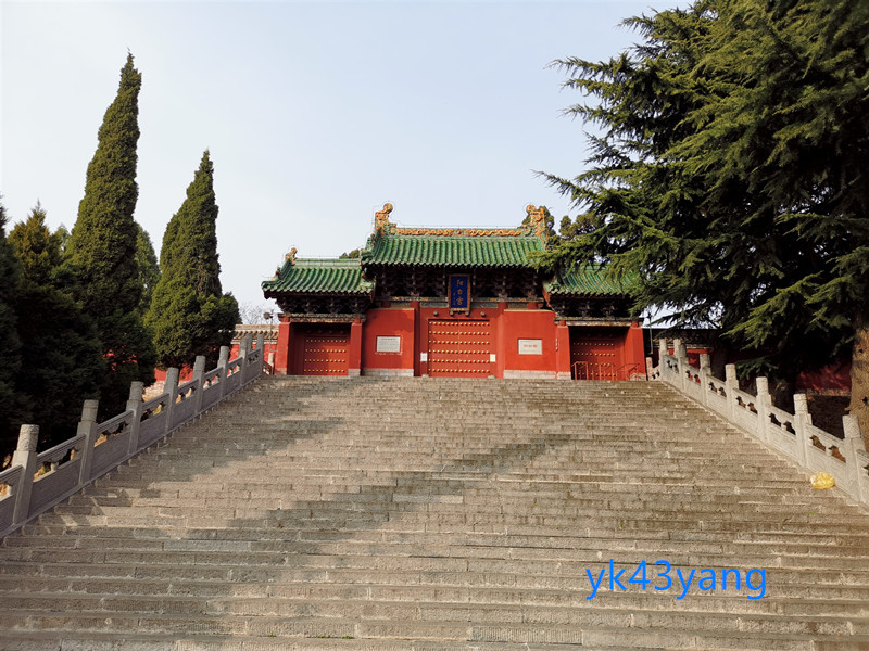 因为阳台宫不开放,无法入内参观,所以大家只能在道观门外拍了几张照片。阳台宫前的的这幢建筑为轩辕殿,这尊高达的雕像,是司马承祯。