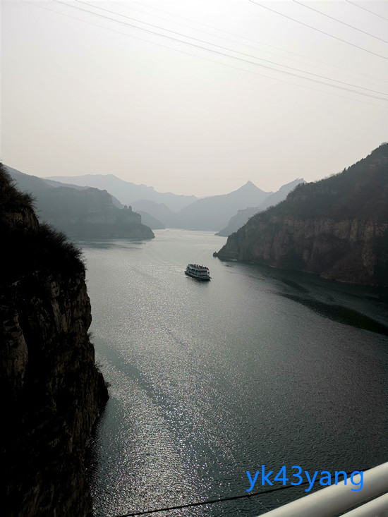 今天要游览的黄河三峡是在济源,位处小浪底大坝上游20公里处。由于拦河大坝的建成,上游水位升高,造成了库区的孤山峡、八里峡和龙凤峡,并称黄河三峡。三峡风光秀丽,两岸群峰竞秀,水流廻转九曲,被列为世界地质公园、国家水利风景区。