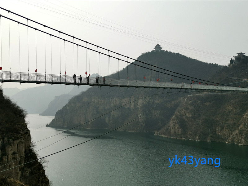 登山索道横跨黄河,跨度达525米之多,距离水面200余米,坐在车中,颇感刺激。