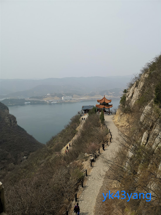 从索道上站到玄天洞,还有一段山路要走。从山上俯瞰在群山中蜿蜒的黄河,也是气象万千,令人赏心悦目。