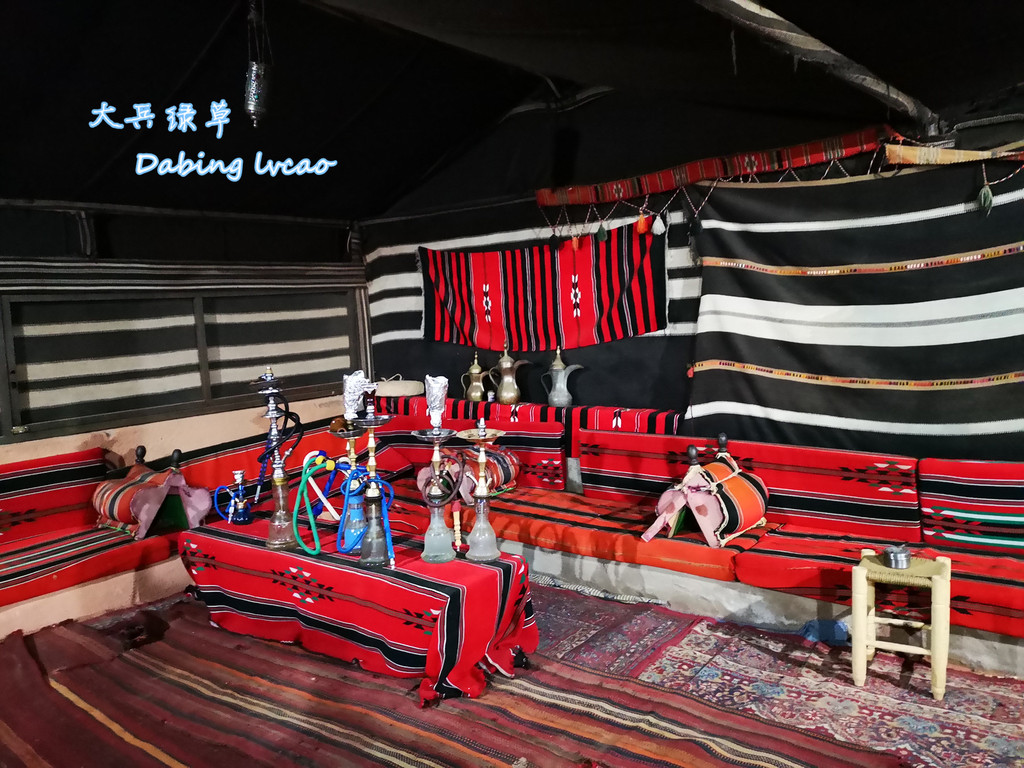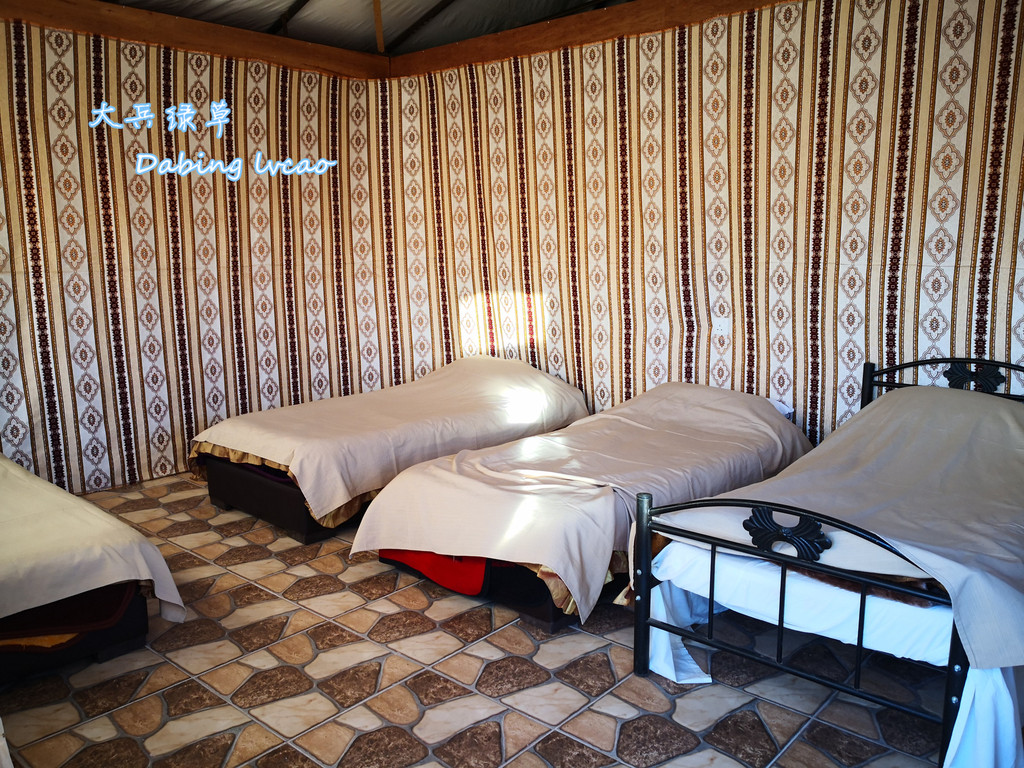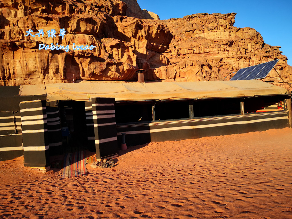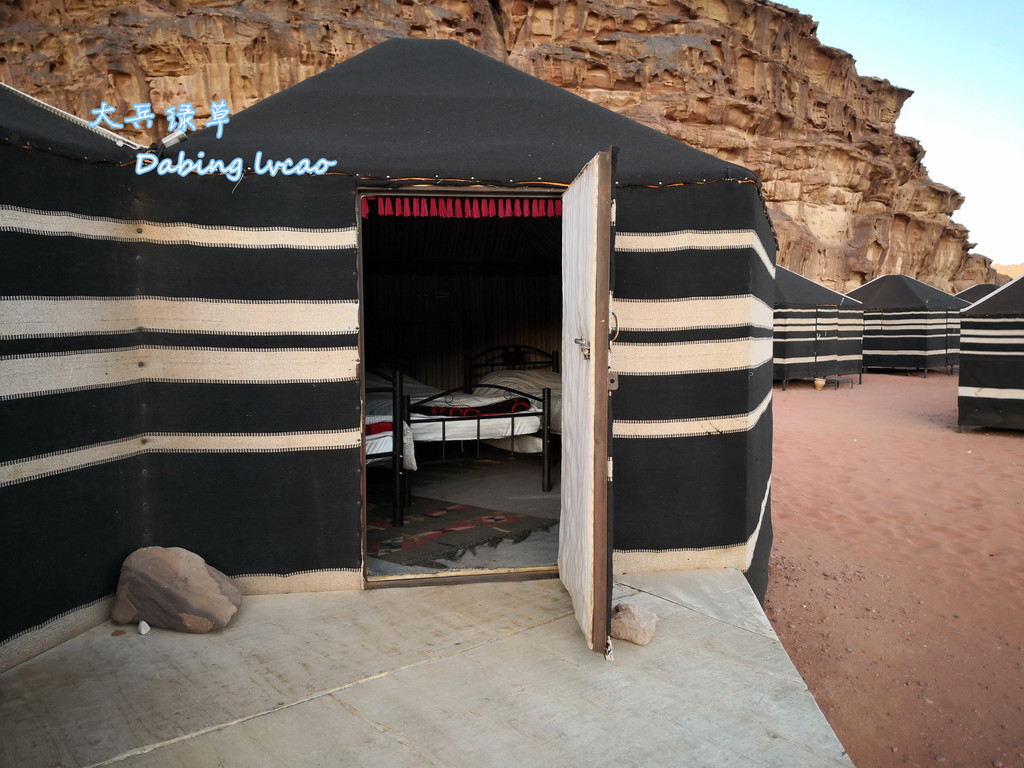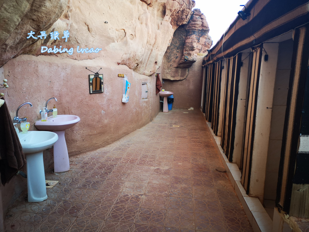 我们11月27日晚在瓦迪拉姆入住的是银河贝都因营地(Milky Way Bedouin Camp),营地位于月亮谷宽阔沙漠峡谷的一侧,背靠一座大山,是典型的野外沙漠营地,营地设施较完善,有公共的卫生洗漱区域和一个大餐厅。我们去的时候可能是淡季,给我们升级为大房间,酒店派两个小伙子接待我们,小伙子人很不错,热情周到,给我们做了丰盛的、味道可口的晚餐和早餐。值得推荐。