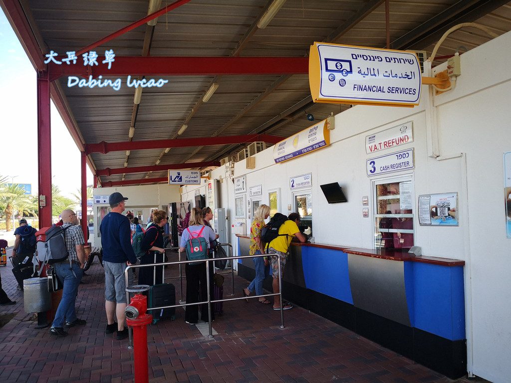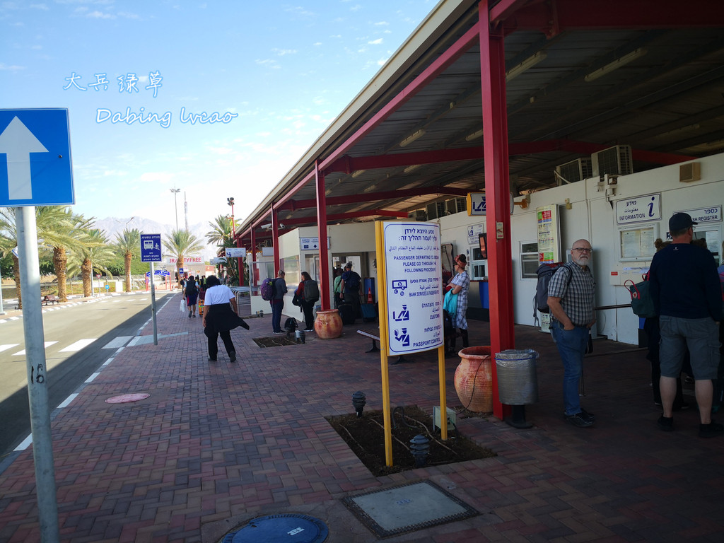 我们2019年11月27日中午从以色列埃拉特(Eilat)关口过境到约旦亚喀巴,正如网上攻略所说,过关人少,速度快。通关也很简单,先到窗口缴离境税,再到一台自动检验机上刷护照,有的人一刷就通过了,有的刷几次也不能通过,就需要到前面的窗口人工检查盖章,然后步行到关口门前,安检行李、检查护照、税费单等就放行了。以色列埃拉特设施总体简洁齐全,有卫生间和直饮水,建议去趟洗手间再通关。