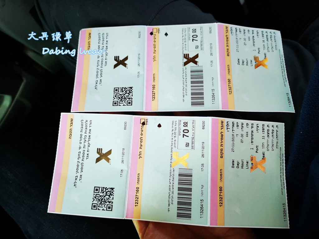 我们从耶路撒冷到埃拉特是在耶路撒冷中心车站搭乘444路公交车的,这趟车虽说是公交车,实际相当于国内的长途大巴,只是停的站多一点。这趟车会经过以色列南部口岸附近,有攻略说可以在Rabin Border Crossing/Road 90站下车,然后步行前往口岸,大约一公里左右,笔者认为在无遮无盖的沙漠公路上拖着行李走一公里是对人的体力和毅力的极大考验,除非你身强体壮且行李不多,否则建议乘444路公交车到埃特拉终点站,从那里再乘出租车前往南部口岸,这样虽然绕一些,还要多花一些银子(40谢克尔),不过人不遭罪,特别对于携带大件行李的朋友。