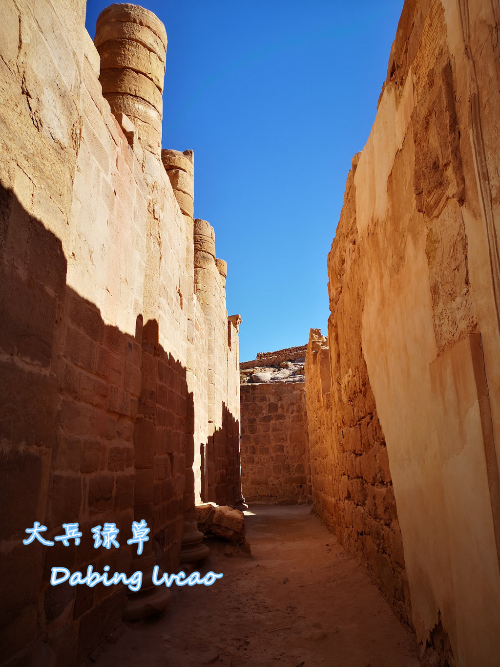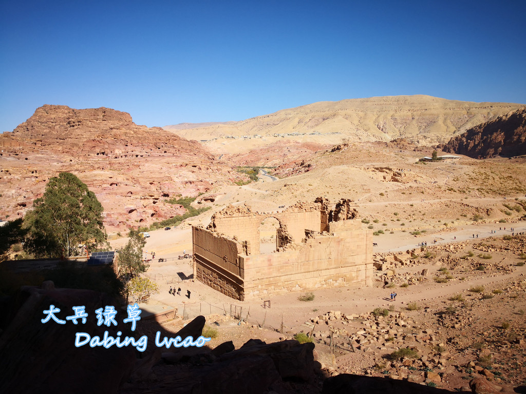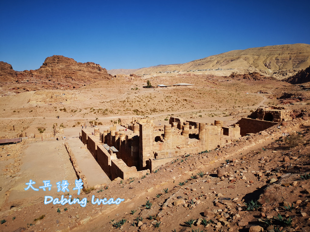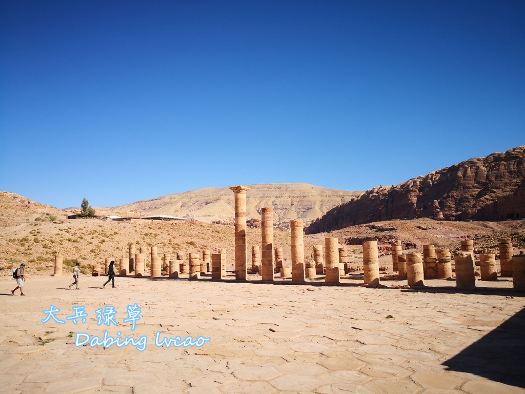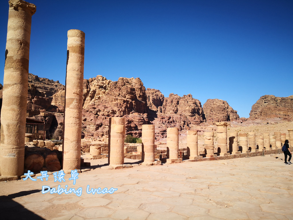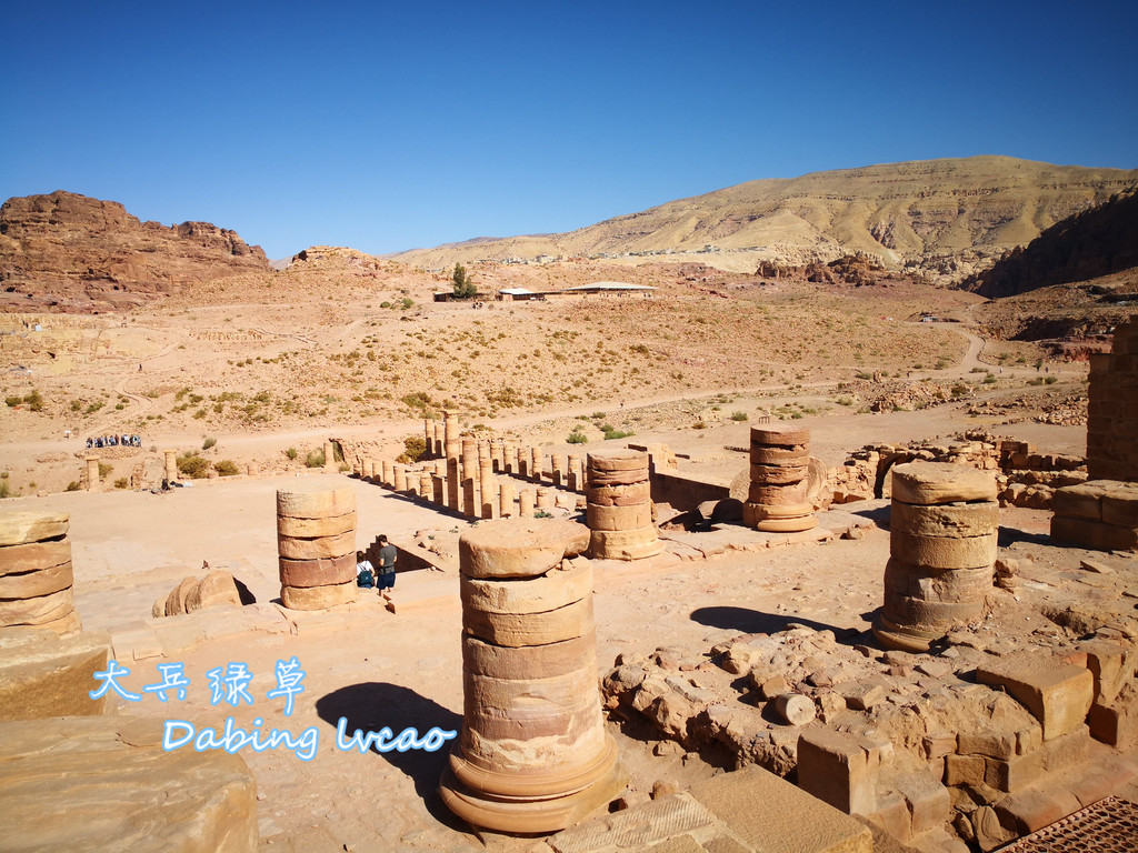 大神殿建于公元前一世纪,到五世纪拜占庭时期仍在使用,是佩特拉建筑群的重要组成部分。这里是传说中古纳巴泰历代国王加冕的地方。从西面的山顶远远看去,真是石柱如林,大神殿的修建显示了极高的建筑水平。