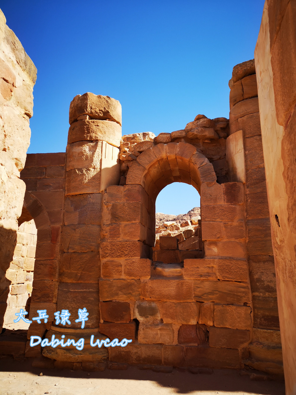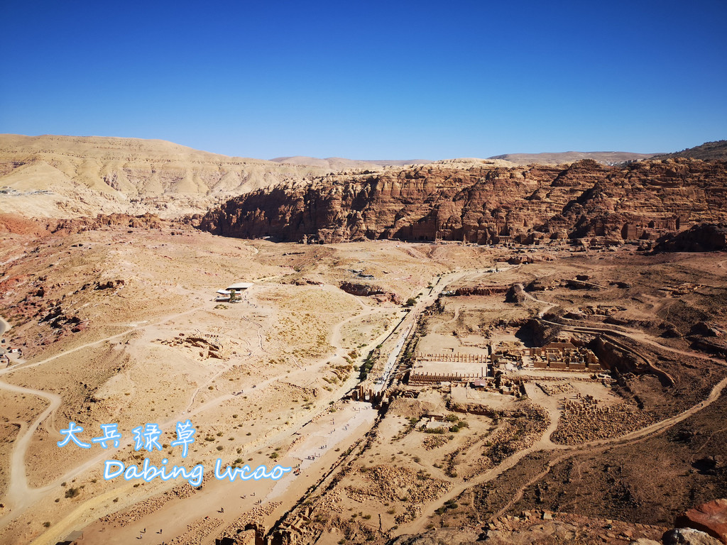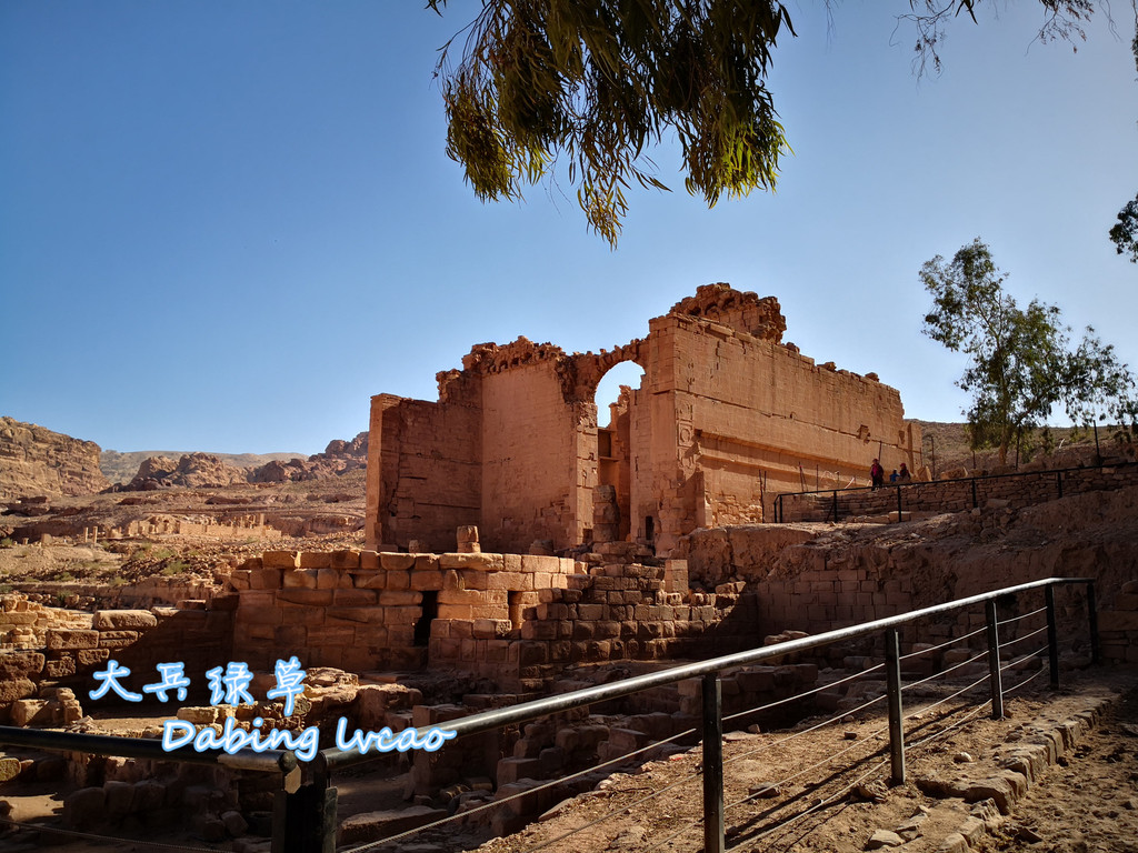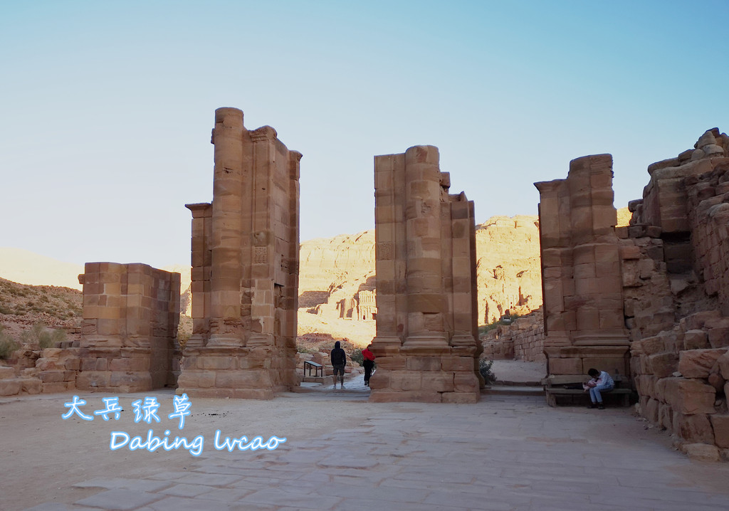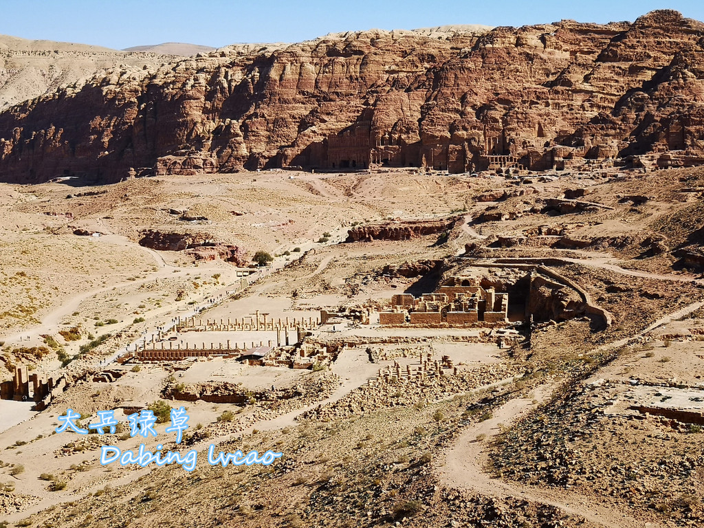 大神殿建于公元前一世纪,到五世纪拜占庭时期仍在使用,是佩特拉建筑群的重要组成部分。这里是传说中古纳巴泰历代国王加冕的地方。从西面的山顶远远看去,真是石柱如林,大神殿的修建显示了极高的建筑水平。