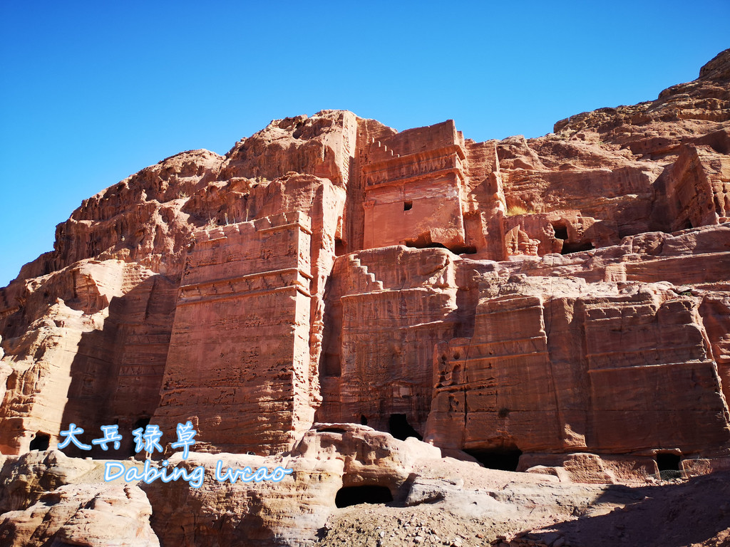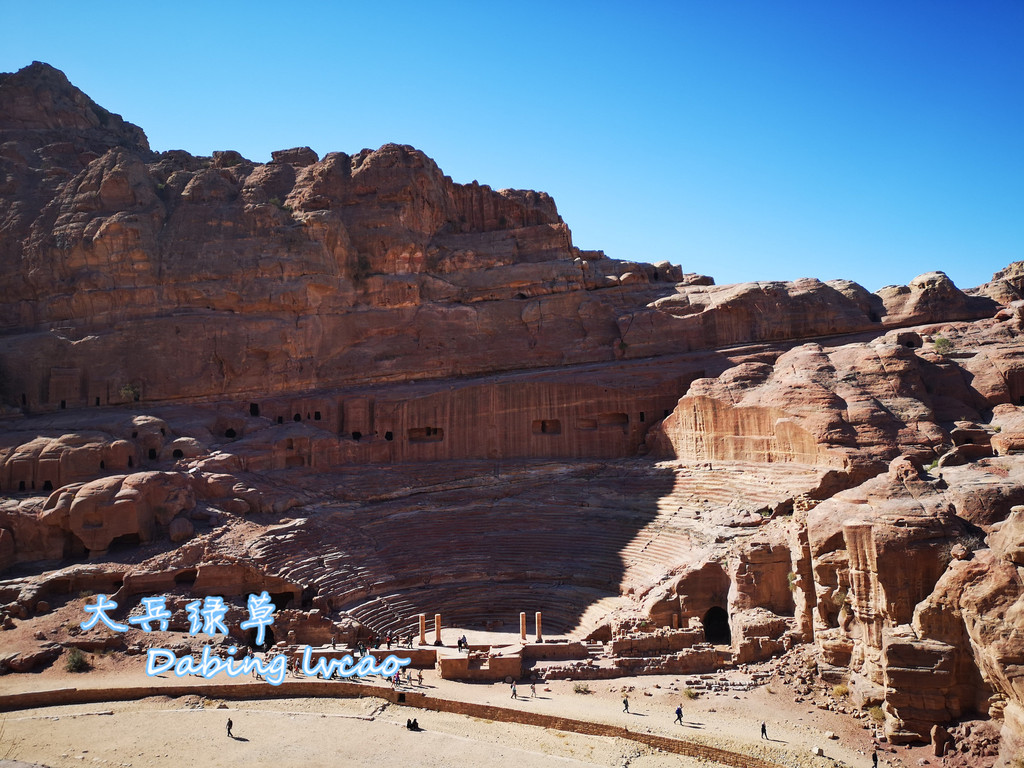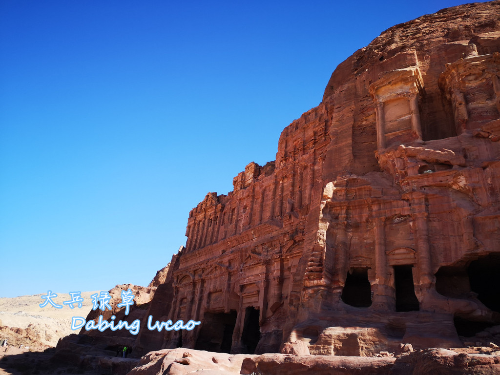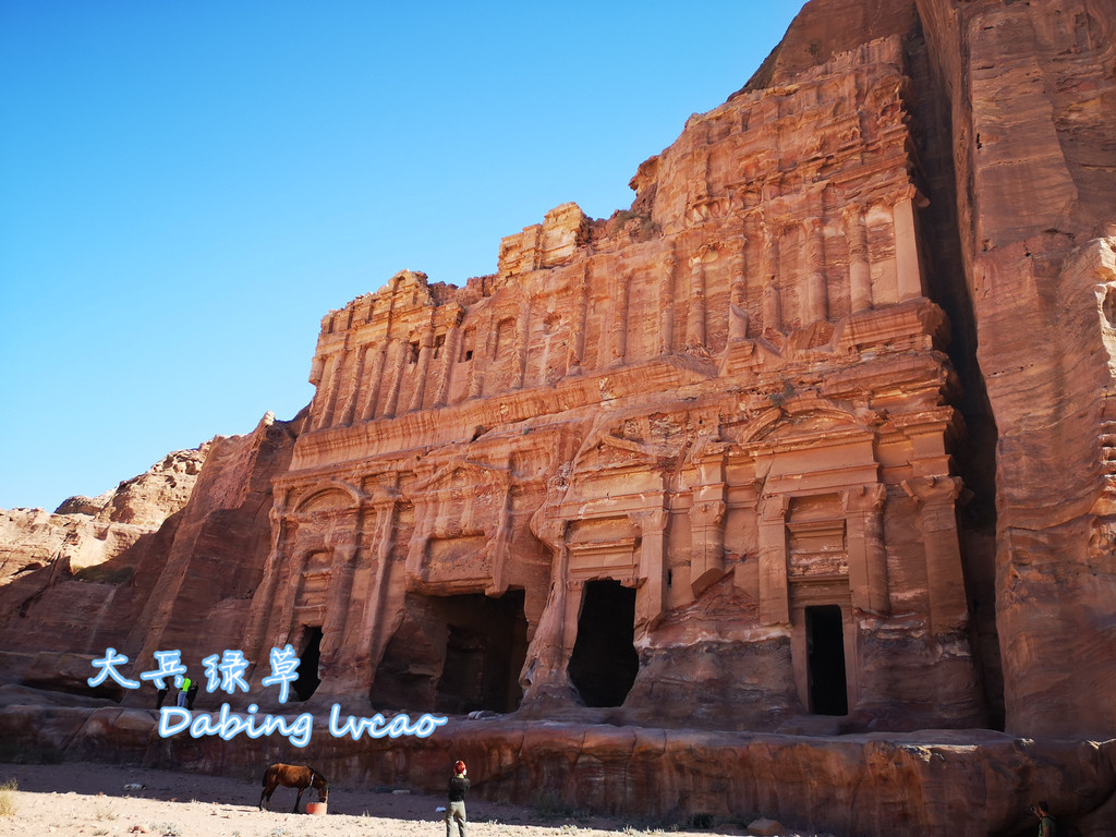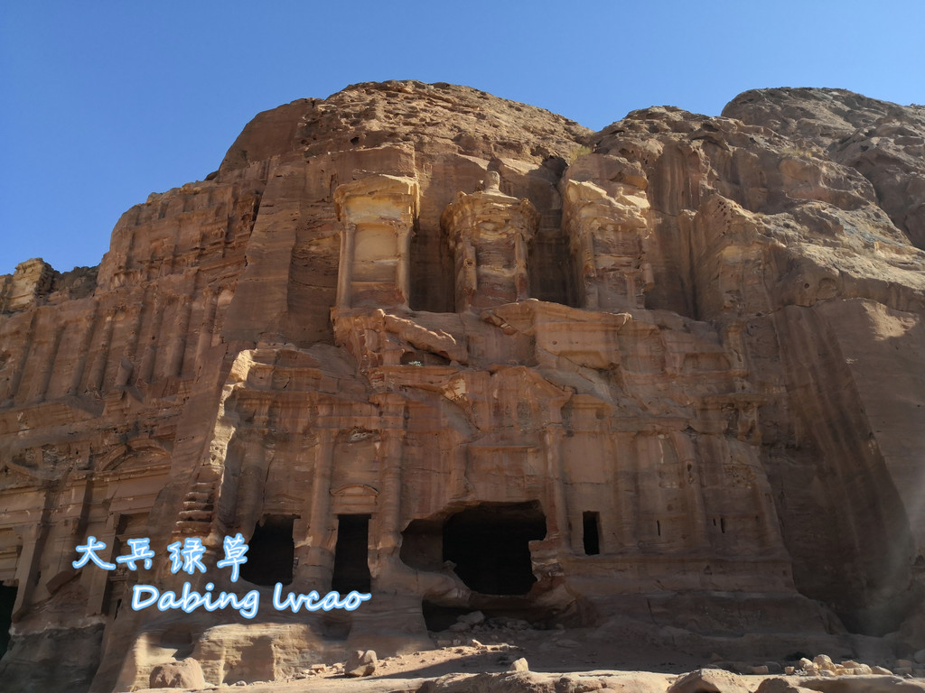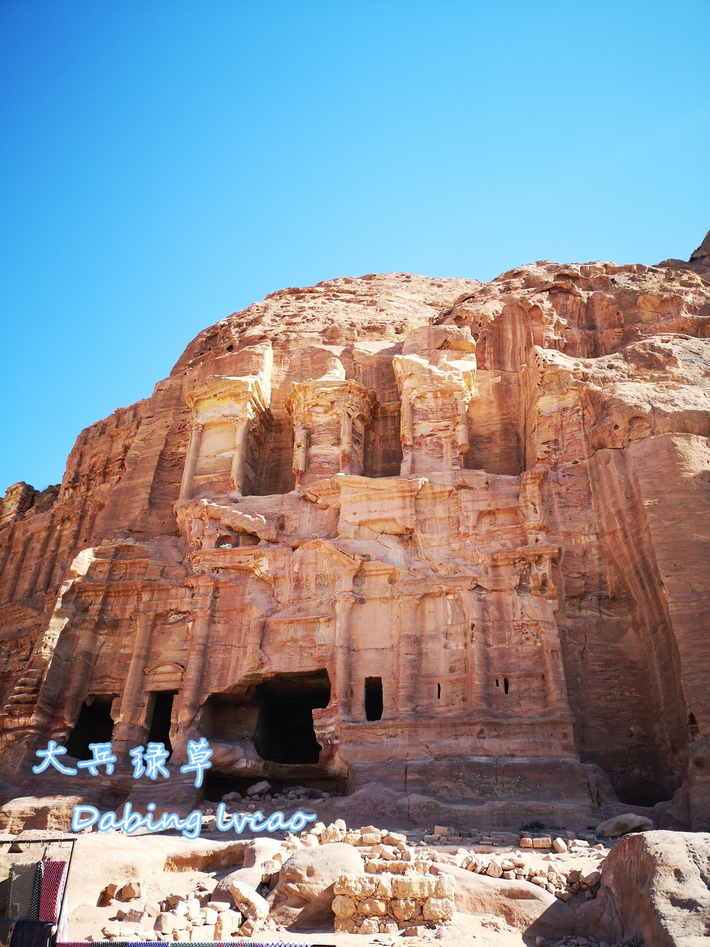 大神殿建于公元前一世纪,到五世纪拜占庭时期仍在使用,是佩特拉建筑群的重要组成部分。这里是传说中古纳巴泰历代国王加冕的地方。从西面的山顶远远看去,真是石柱如林,大神殿的修建显示了极高的建筑水平。