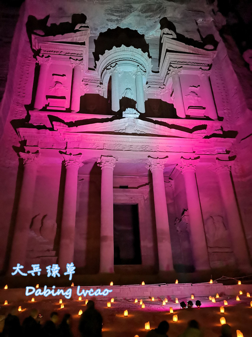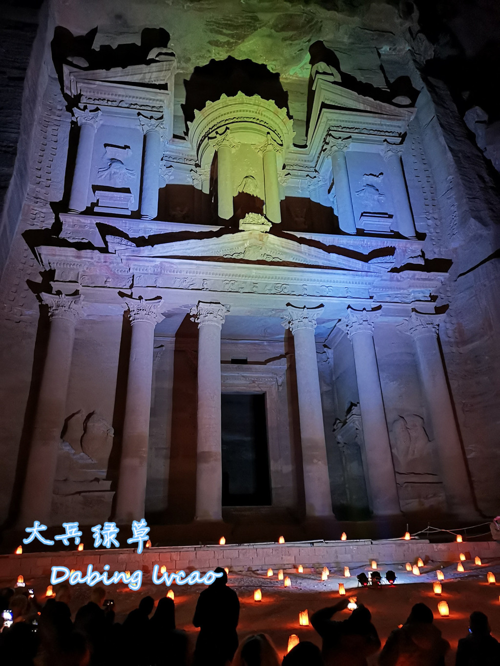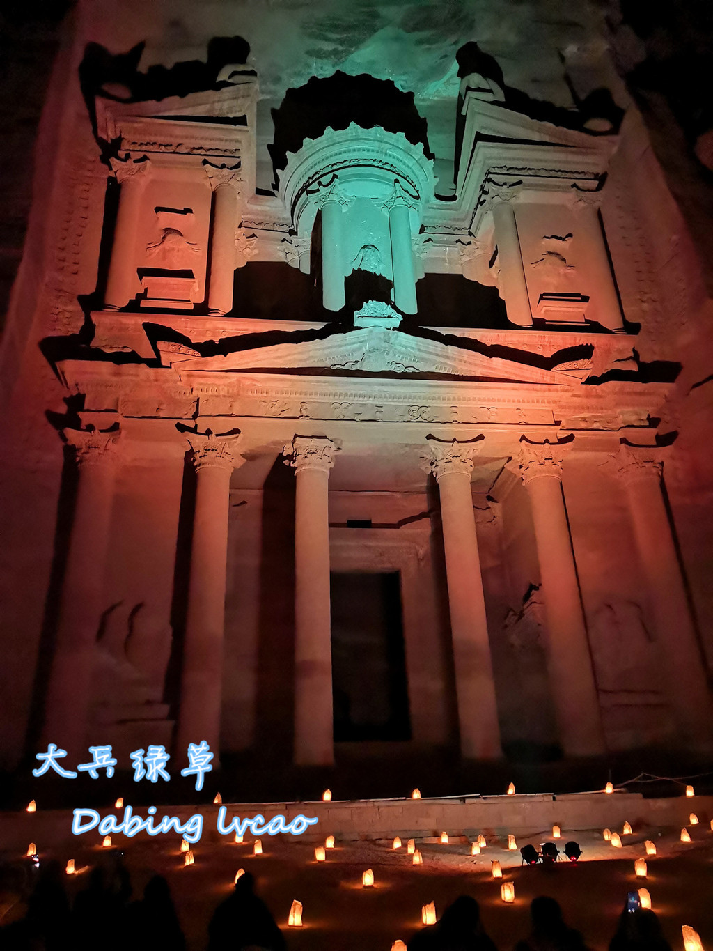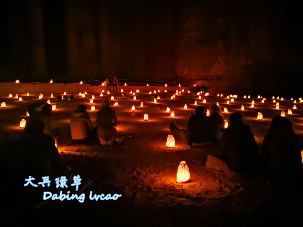 每周一、三、四晚上八点半,会在卡兹尼神殿前举办时长约两小时的佩特拉之夜(Petra by Night)烛光活动,从景区大门至卡兹尼神殿的道路两旁点燃蜡烛,引导着游客前往目的地——卡兹尼神殿,卡兹尼神殿前的广场上也摆满蜡烛,昏黄微弱的烛光在漆黑的夜里,佩特拉之夜的表演开始了,烛光氛围中有人用英文在悠扬的笛子声中讲着遥远的故事,彩灯把卡兹尼神殿映照成各种颜色,营造出一种神秘莫测的气氛。