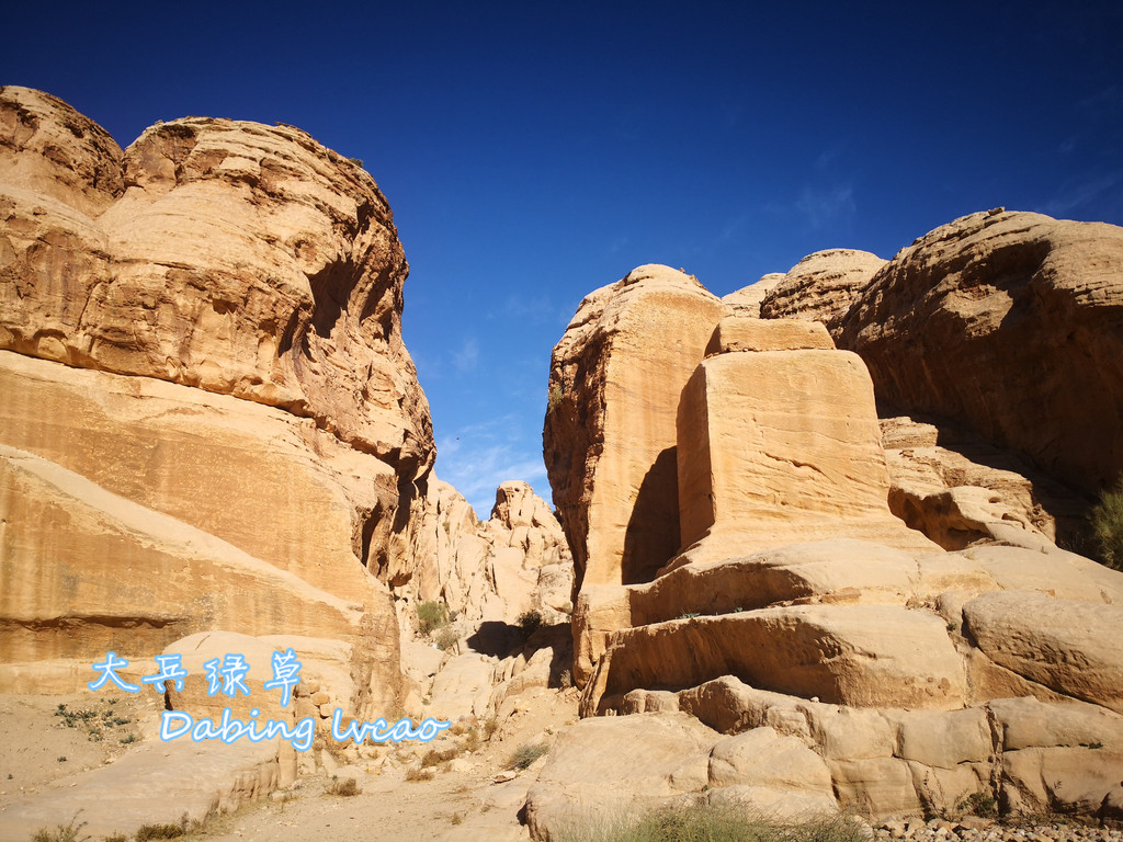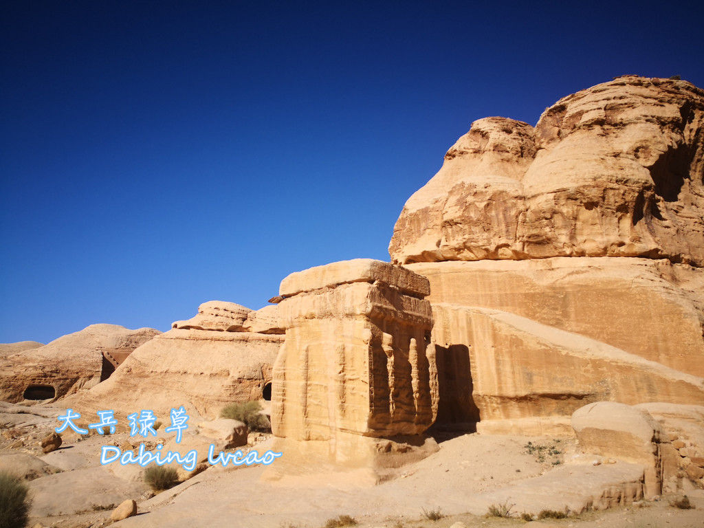 在前往佩特拉的路旁,你会看到几个独立的立方体形状的遗迹,这就是巨灵块。在阿拉伯民间传说里,巨灵块是一种精神的象征。贝都因人则认为它是神灵的住宅。