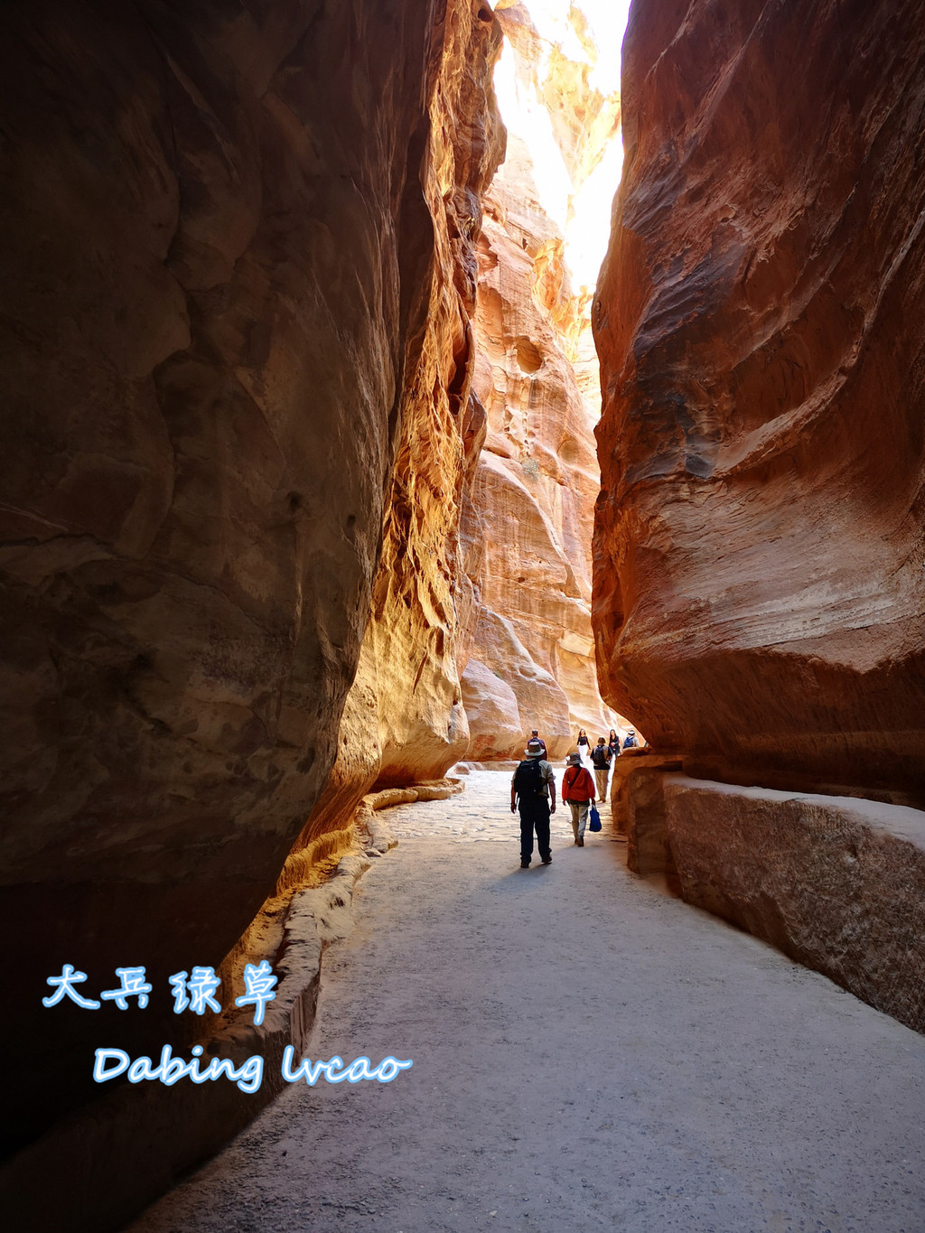 当游人们走过一段平坦的大路后就来到西克峡谷前,西克峡谷(SIQ)也称“蛇道”,是一个长约1.5公里的狭窄峡谷通道,峡谷两边是高约80多米的峭壁,最宽处7米,最窄的地方只有2米。当太阳照在形成峡谷的红砂岩上时,整个峡谷会笼罩在一片玫瑰红中。
