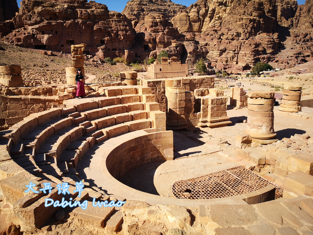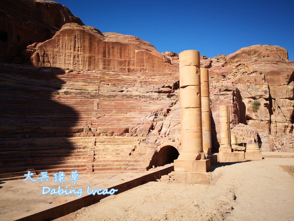 离开卡兹尼神殿往前走,走过一段沿峡谷而行的较为宽阔的土石路,前面峡谷逐渐开阔,在道路左侧的山下,一座古罗马剧场呈现在游人眼前,这是一座呈半圆形、阶梯上升、可容纳7000人的古罗马剧场,它依山而建,看台部分与这里的许多建筑一样是开凿山石而成,舞台部分仅残留几根石柱。这个剧场建于公元前10年至公元40年间。公元363年发生的一次大地震,使剧场舞台建筑毁于一旦。