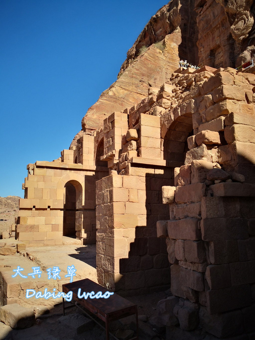 在大神殿西面山脚下有一座宫殿,这就是被称为法老女儿的宫殿的女儿宫(Qasr al-Bint),女儿宫不是在山岩中开凿而成的,而是用石块砌筑而成的,它有23米高,26台阶,是佩特拉最重要的寺庙,供奉的是沙拉神(Dushara)。透过高大巍峨的残垣断壁依然能看到它昔日的辉煌。