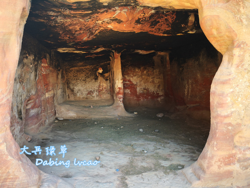 尤尼舒墓室(Tomb of “Unayshu”)位于古罗马剧场的对面,是公元一世纪沙吉拉特二世 (Shagiliat II)王后时修建,马利克二世(Malik II)国王去世时王子尚幼,王后摄政,辅佐王子6年。尤尼舒墓室是一座家族墓,里面葬着17个家族成员,墙上刻有家族的姓氏。这个墓室转角壁柱和门的设计很特别,门上的三角墙顶部是阶梯式山形墙,典型的亚述风格,还有埃及的凹雕,门两侧的立柱是不对称的凹型设计。壁龛、长方形的餐桌和石凳都刻在墙上。
