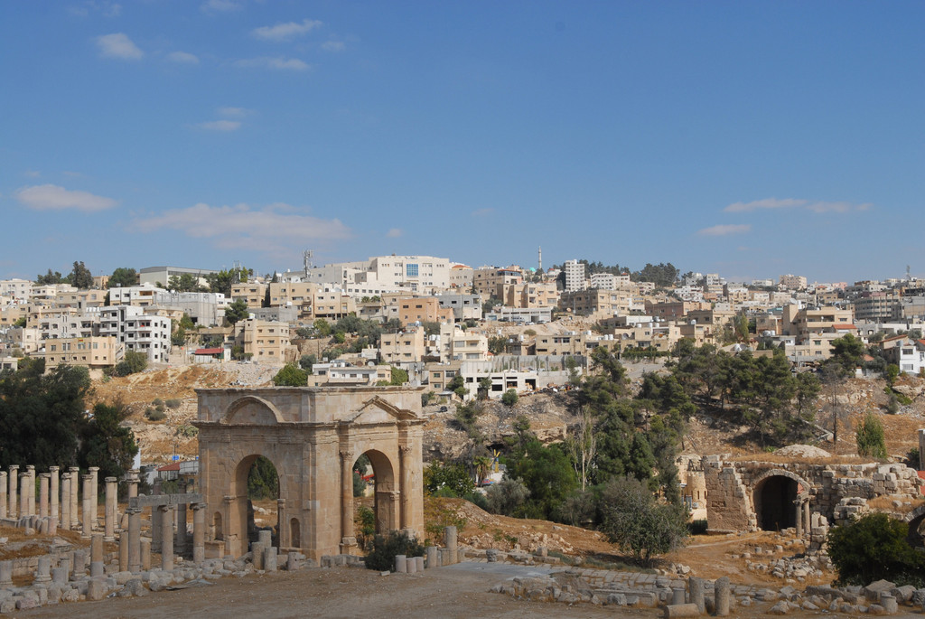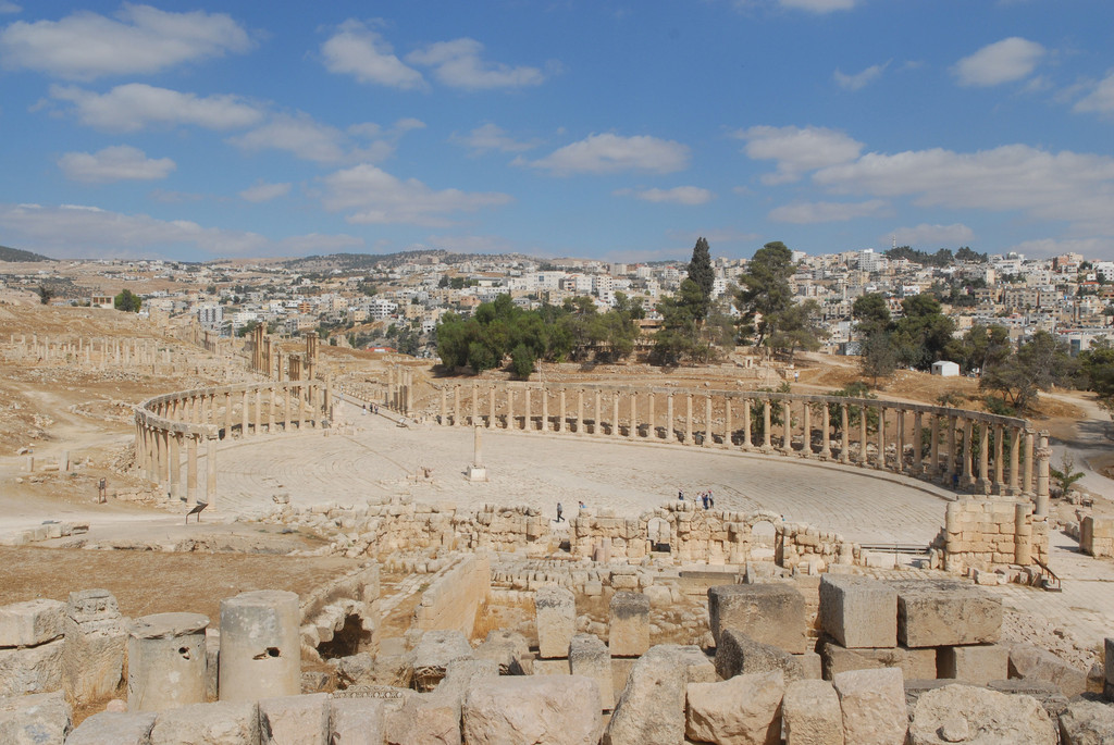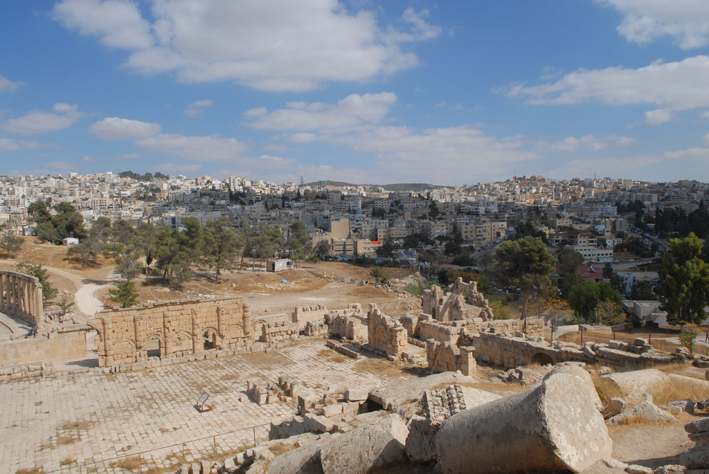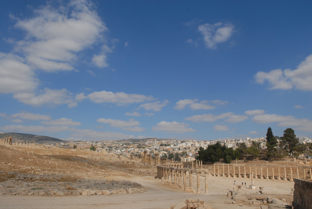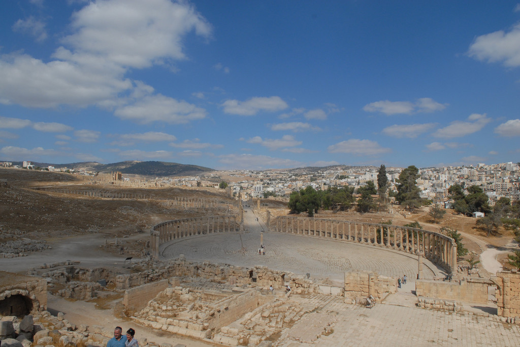 饭后开车10分钟即到达杰拉什古城,12:50进入景区。杰拉什古城是古罗马时代的城市遗迹,建在一片小高地上,据说曾被掩埋了千年之久,近代才被重新发现。古城遗址的规模不小,气势也很大,游客倒是并不多。我们游览了两个小时,下午3时才出来,集合,上车,今天的游玩项目就结束了。