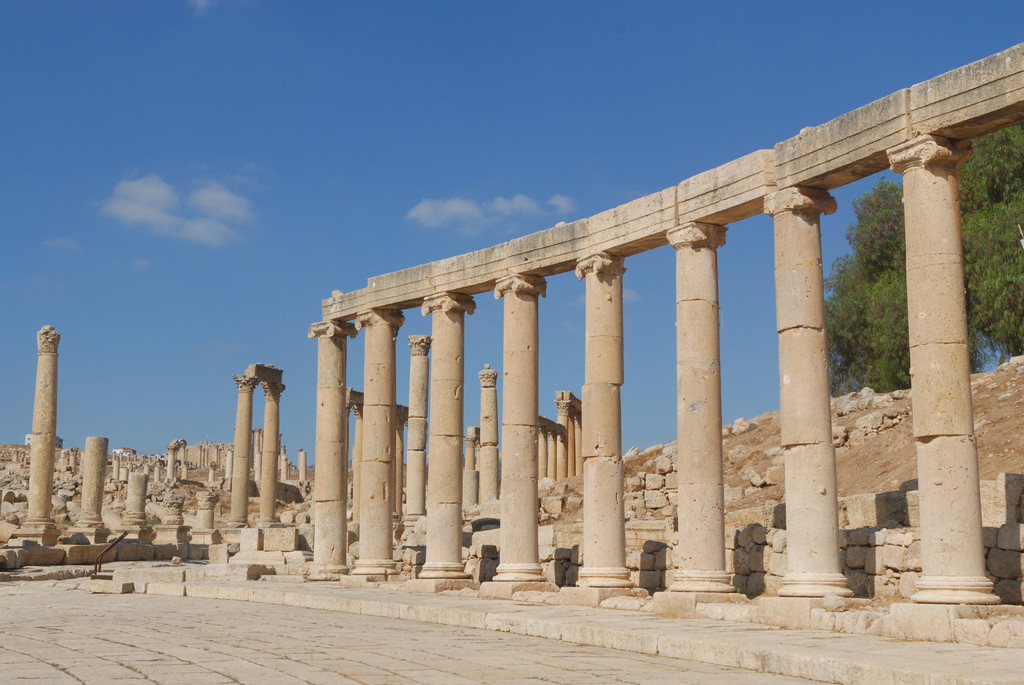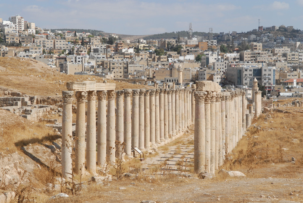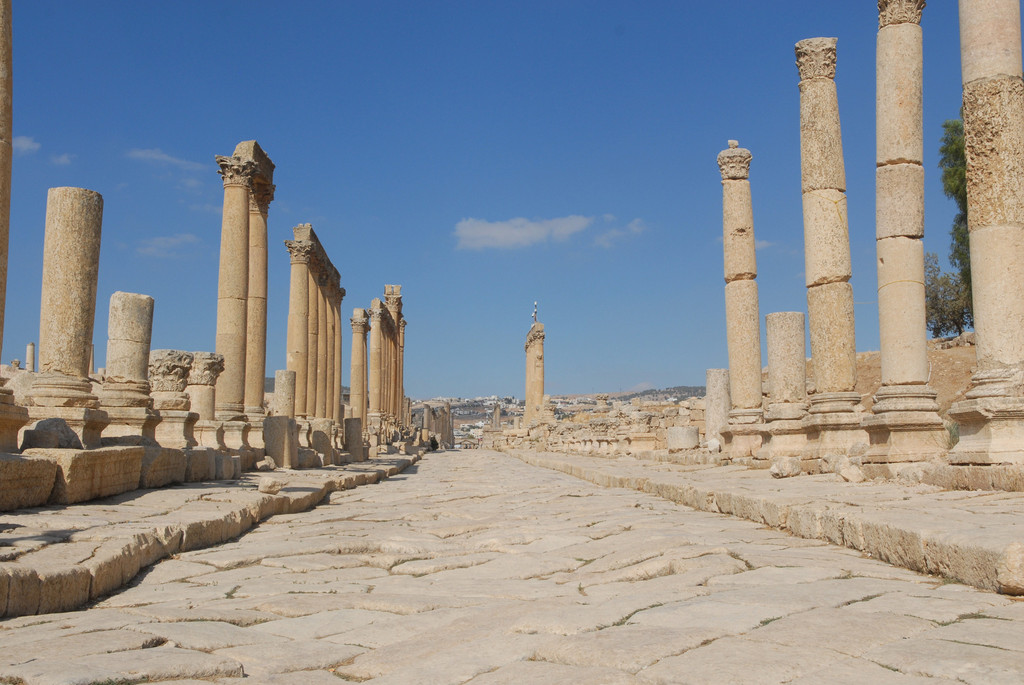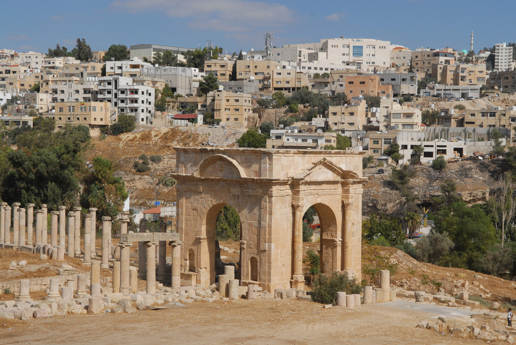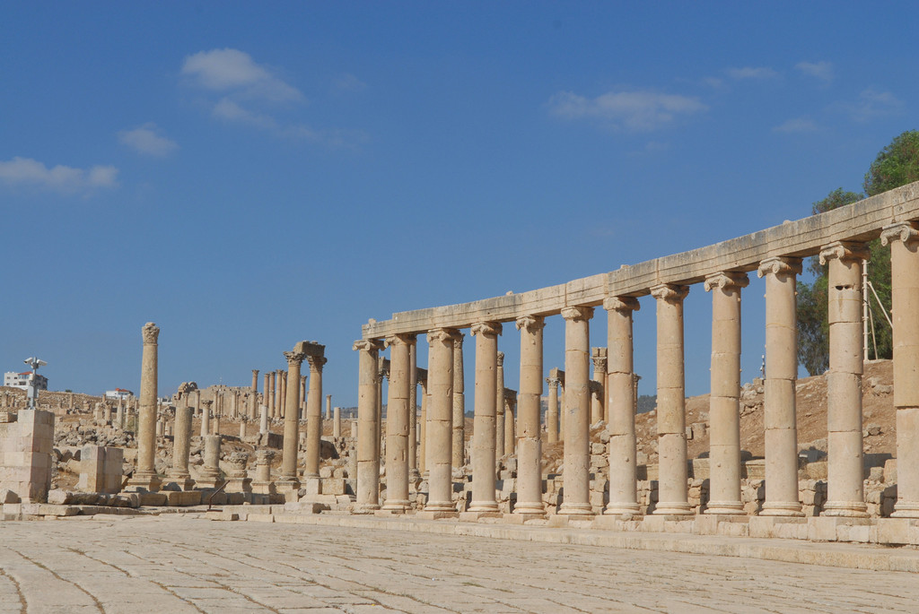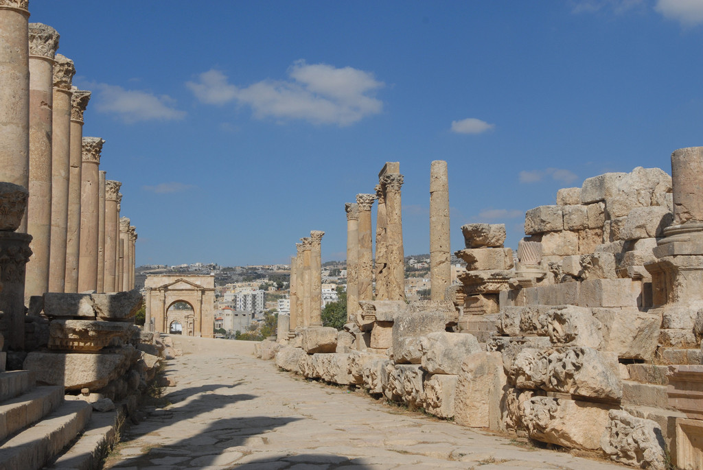 饭后开车10分钟即到达杰拉什古城,12:50进入景区。杰拉什古城是古罗马时代的城市遗迹,建在一片小高地上,据说曾被掩埋了千年之久,近代才被重新发现。古城遗址的规模不小,气势也很大,游客倒是并不多。我们游览了两个小时,下午3时才出来,集合,上车,今天的游玩项目就结束了。