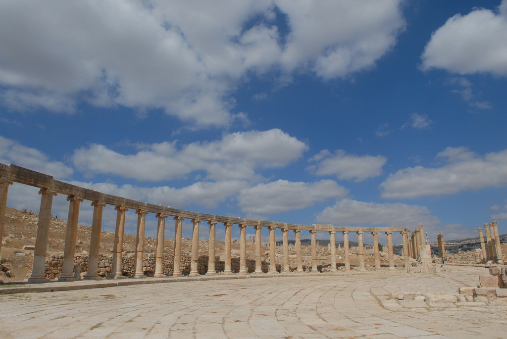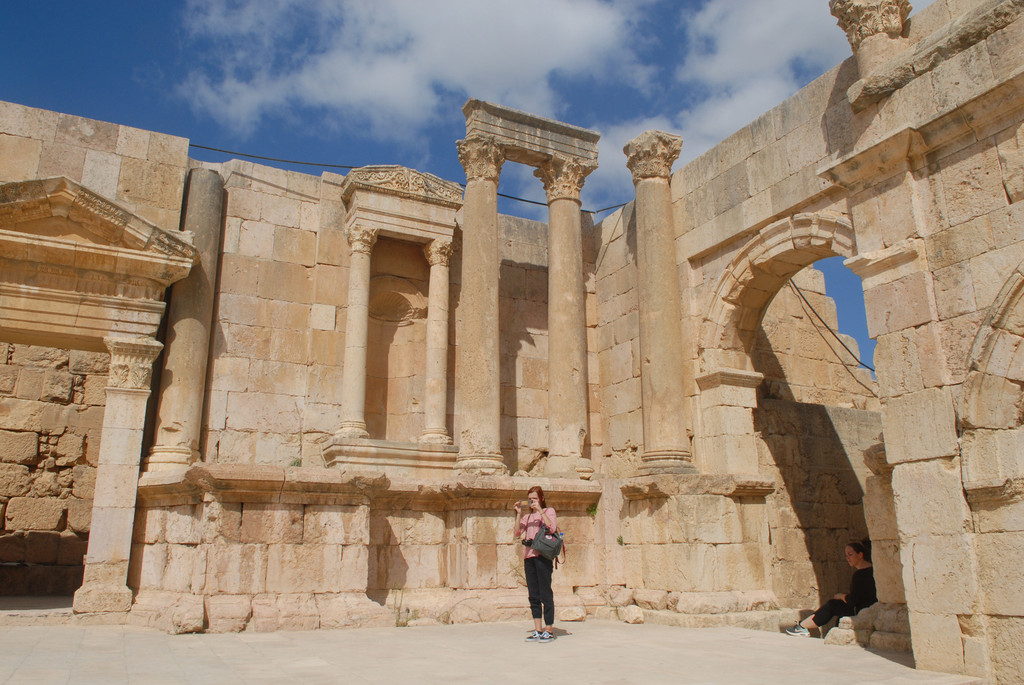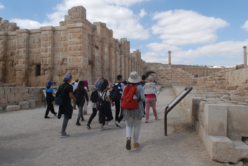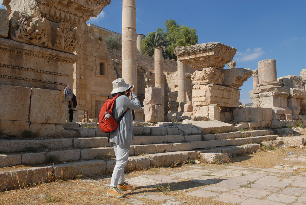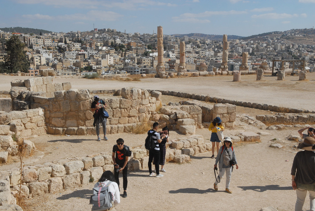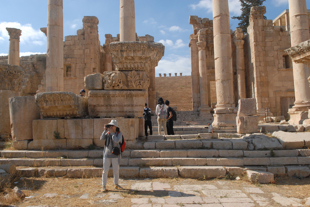 我在网上看的资料,这个杰拉什古城在上世纪80年代就申报过世界文化遗产,但连续两次被相同的理由即使用了不合格的粘合剂而未被批准。约旦政府一气之下就不再申请了。这一点约旦人就不如中国人有韧性了,中国的麦积山石窟当年也是因为保护措施不合格而不被批准的,但我们就不气馁,一再争取,最后还是搭上了打包丝绸之路重要遗产的便车。而一旦申报成功,旅游效应也会放大多少倍。看看今天的麦积山石窟,游人如堵,名利双收。对比起来,我真有点替杰拉什古城可惜。
