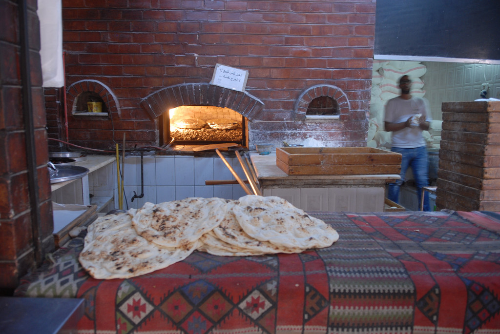 中午到达杰拉什古城附近,在一家很大的类似国内农家乐格局的路边餐馆里吃烤肉大饼宴。