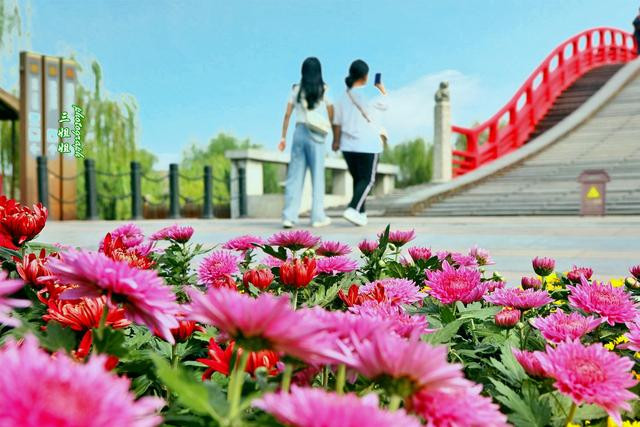 金秋时节,是古城开封最美的时节。节日这两天在清明上河园里,已经能够看到绽放在的菊花了。蓝蓝天,蓝蓝的水,映衬着红花金盏,煞是养眼。