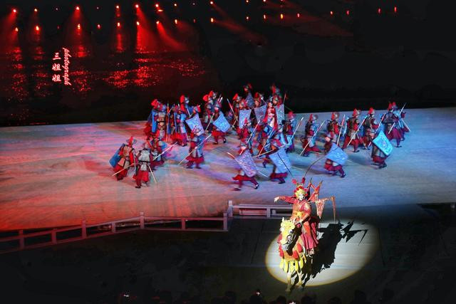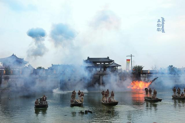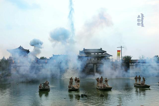 导游告诉我,下午还有一场重头戏,那就是每天15点30分的大型实景演出《大宋·东京保卫战》,演出场地在九龙桥的西南水面上,“快去吧,就要开始了!”,我赶到的时候离演出开始还有十分钟,没想到观众席上已无座可寻。