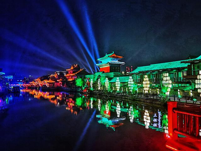然而,清明上河园最惊艳的夜晚是属于《大宋·东京梦华》的。这是一场用《清明上河图》和八阙宋词串联而成的大型实景水上演出,经典的音乐,华丽的视听,梦幻的灯光,宏大的场面,极具艺术感染力。