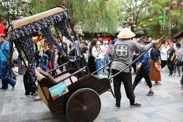 说实话,在清园里面,不穿一身宋朝的服装,自己感觉都不搭。走累了,我便叫了一辆“东京滴滴”,吱吱呀呀地在园内转悠了起来。