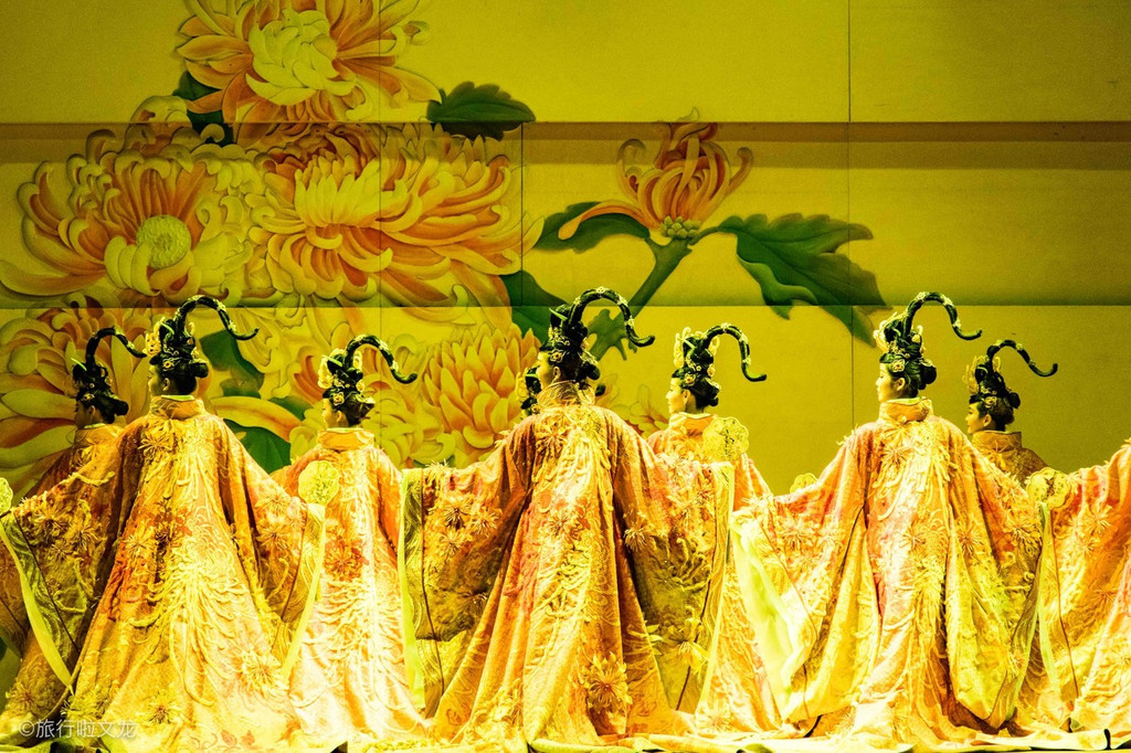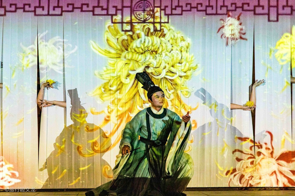 知道了这个节目的背景,我想下面的游客是有多么羡慕,这一位词人醉倒在花丛中做梦说梦见的美好场景,将这样的场景生动形象展现出来。舞台上的菊花仙子们优美的舞姿和身姿总能吸引大批的游客来观看。华丽的服饰更是让人看着就离不开视线,舞台上的灯光恰到好处的展现了梦境中的美,菊花作为背景图,姿势还有图案也繁多,就仿佛自己是那位做梦的词人所梦见的仙境。