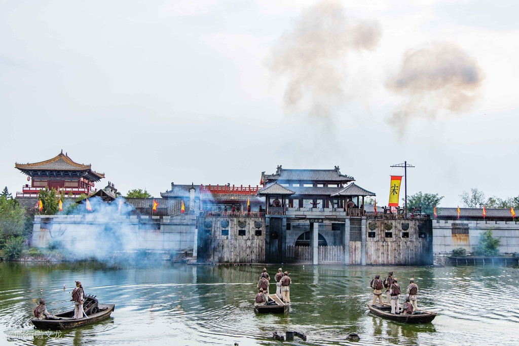 这样模拟宋朝战争的表演难得一见。演员们的飒爽英姿 和政 府去教室的经济省让人振奋 城门上的将领望着水中打仗的场景充满自信。寥寥升起的战火炊烟瞬间就将周围笼罩得看不清局势,让观众们带入了那个年代抗战时期的场景,场面上异常的活跃,战士们将气氛完全带动了起来。
