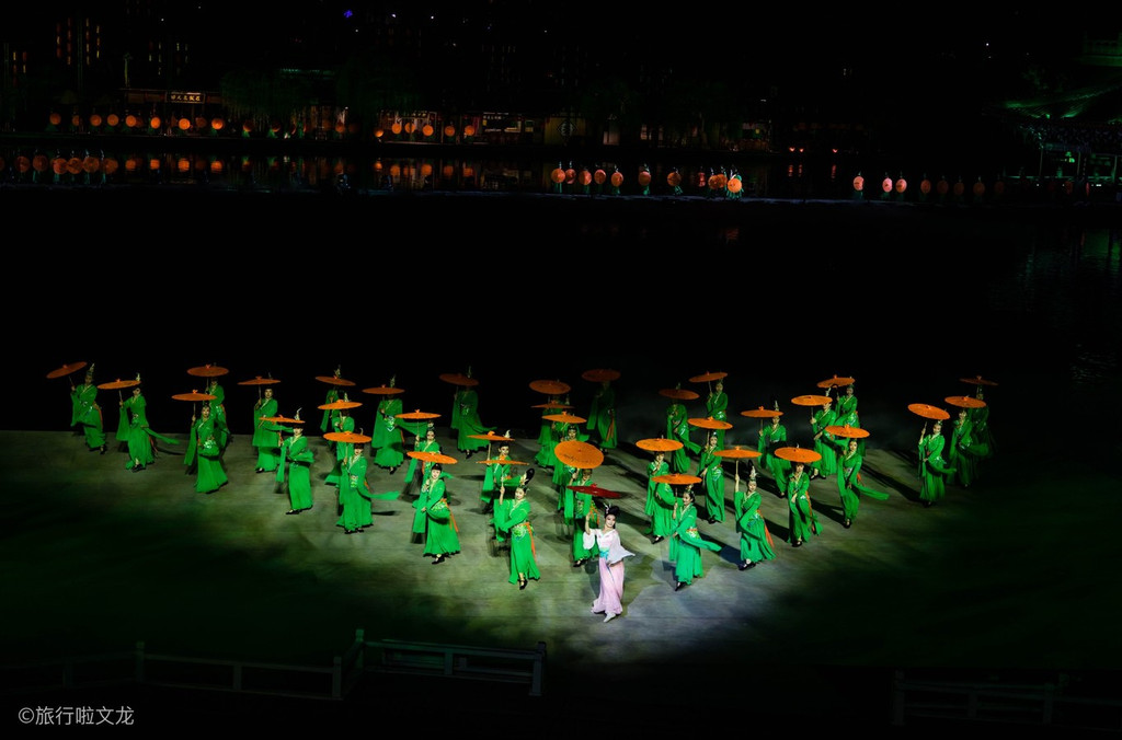 这里的表演实在太多了,水上的的少女拿着红伞 从江 上飘过,湖面的灯光的颜色也会变化, 比如 说变成橙红色,还会有少女荡着秋千,然后飘过湖面打出水花,这样的场景很唯美,在这样的小桥流水,人在湖上表演的场面,总能让人感到惊叹和无限的遐想,在这里你还会观赏到宝马香车在湖面上飘过,这样的创意非常的特别。