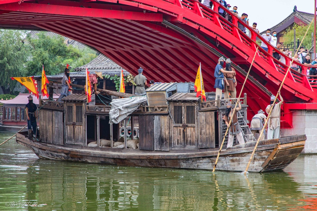 游客们站在虹桥上以及河岸上观看表演。就像是《清明上河图》里热闹的市井生活。包公巡河的片段演绎的非常精彩和栩栩如生,表演的人也比较良心,众多的游客在观看着,为了保证试听效果的清晰,这些表演都是前期的配音出来的,采用了最大声背的开声音开放形式,演员们只要根据台词对口型就可以将这个故事演绎完成,当然演员们戴着面纱,让人只关注动作的部分,不会在乎面部表情,也不用不说台词,身体上的各个动作表演还是很到位的,突出了他们的专业水准。