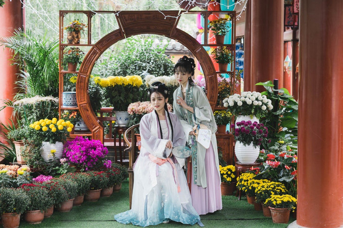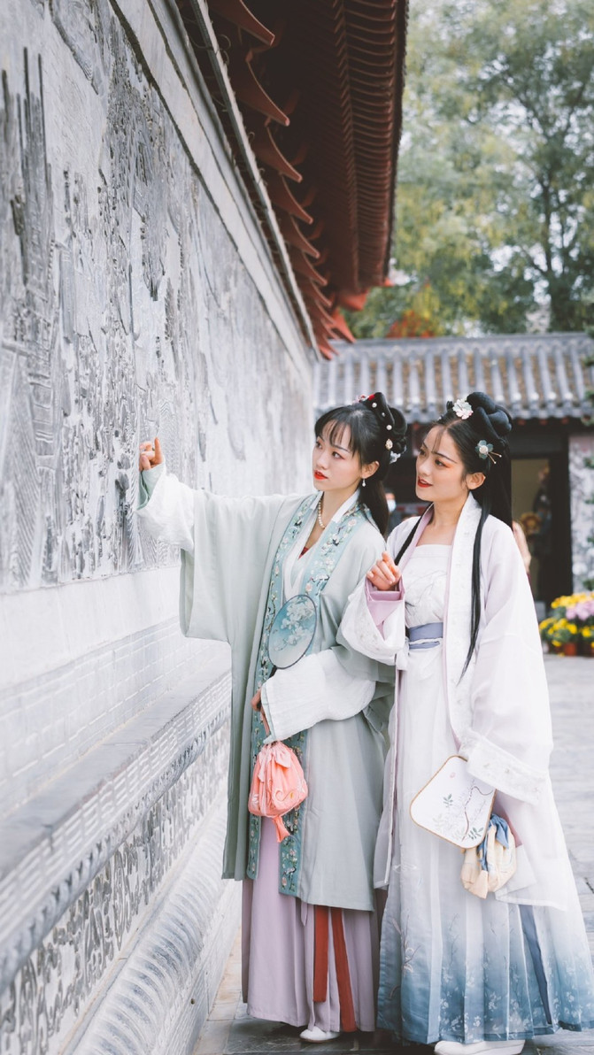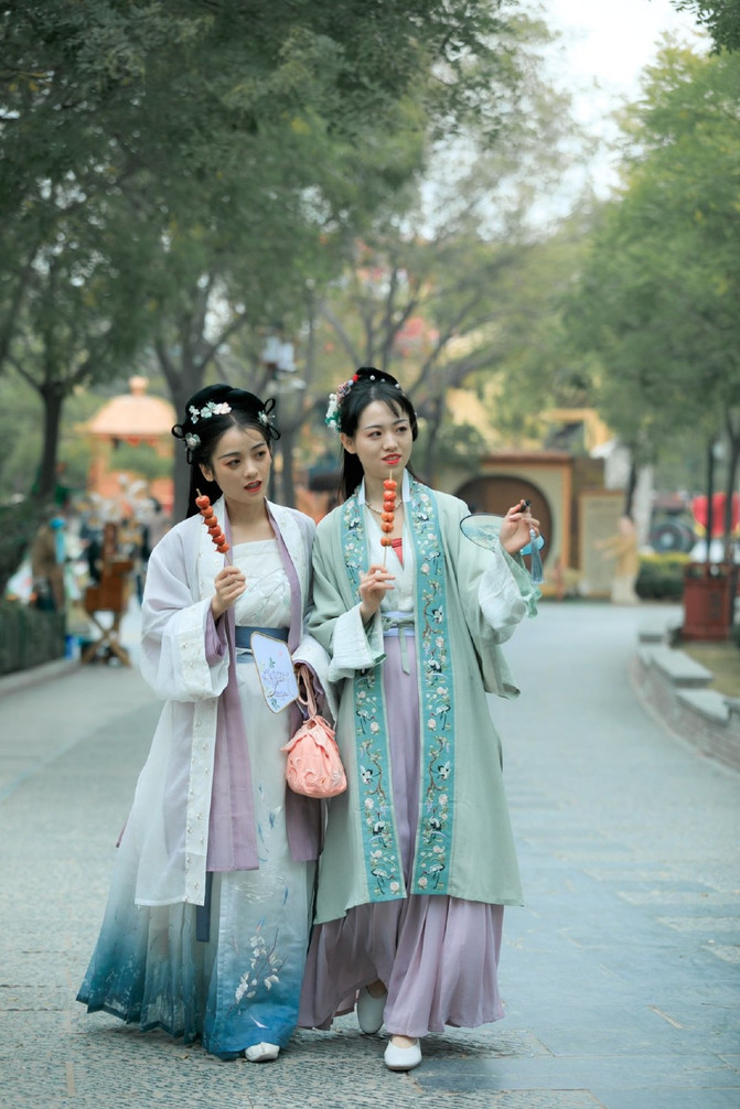 我们一行几人漫步在清园内,两个穿宋装的小姐姐格外出众,吸引了无数路人的目光。我们沿着古色古香的小道一路向前漫步,路边有柳树成荫,鼓乐不绝耳。