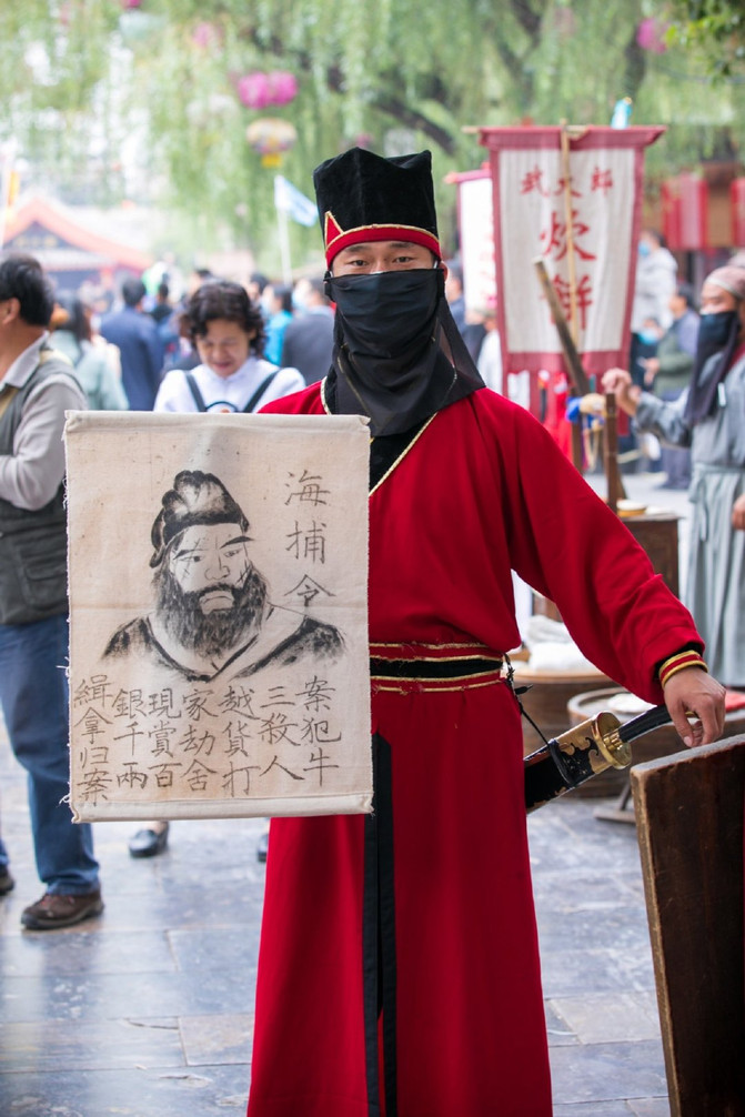 上午九点,颇具仪式感的开园仪式,隆重而热闹,在迎宾门外的广场上,车马队列、锣鼓喧天,包拯率领护卫王朝、马汉、张龙、赵虎等一班人向各位游客致欢迎礼,欢迎来自全国各地的游客。