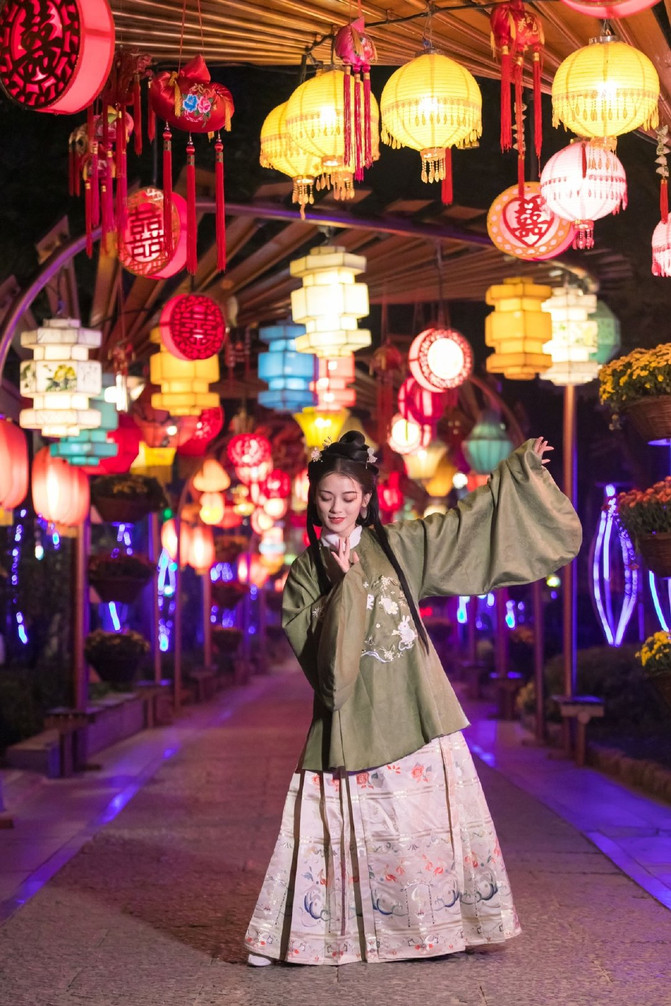 美轮美奂的灯笼,灯光照射下的菊花更加神韵多彩,惊艳了整个夜晚。同行的小姐姐被眼前这一盛世美景所吸引,在花前灯下跳起了舞,真是浪漫,让人如痴如醉!