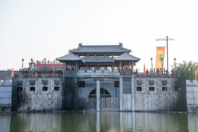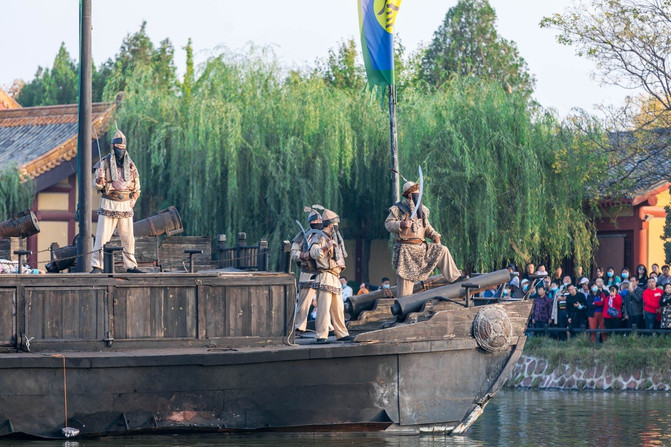 如果说岳飞枪挑小梁王是园区内不得错过的大型马战演出,那另外一个不容错过的就是一天一场的水上实战演出大宋· 东京保卫战。
