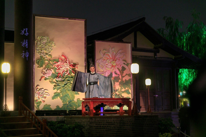 行至清明文化广场,看到这里站满了游客,原来准备上演关于菊花主题的演出《菊美人》,这个节目也是夜游期间必看的节目之一,值得驻足观看!